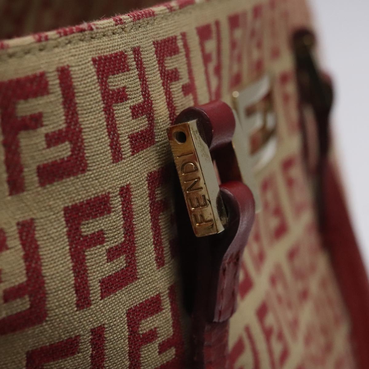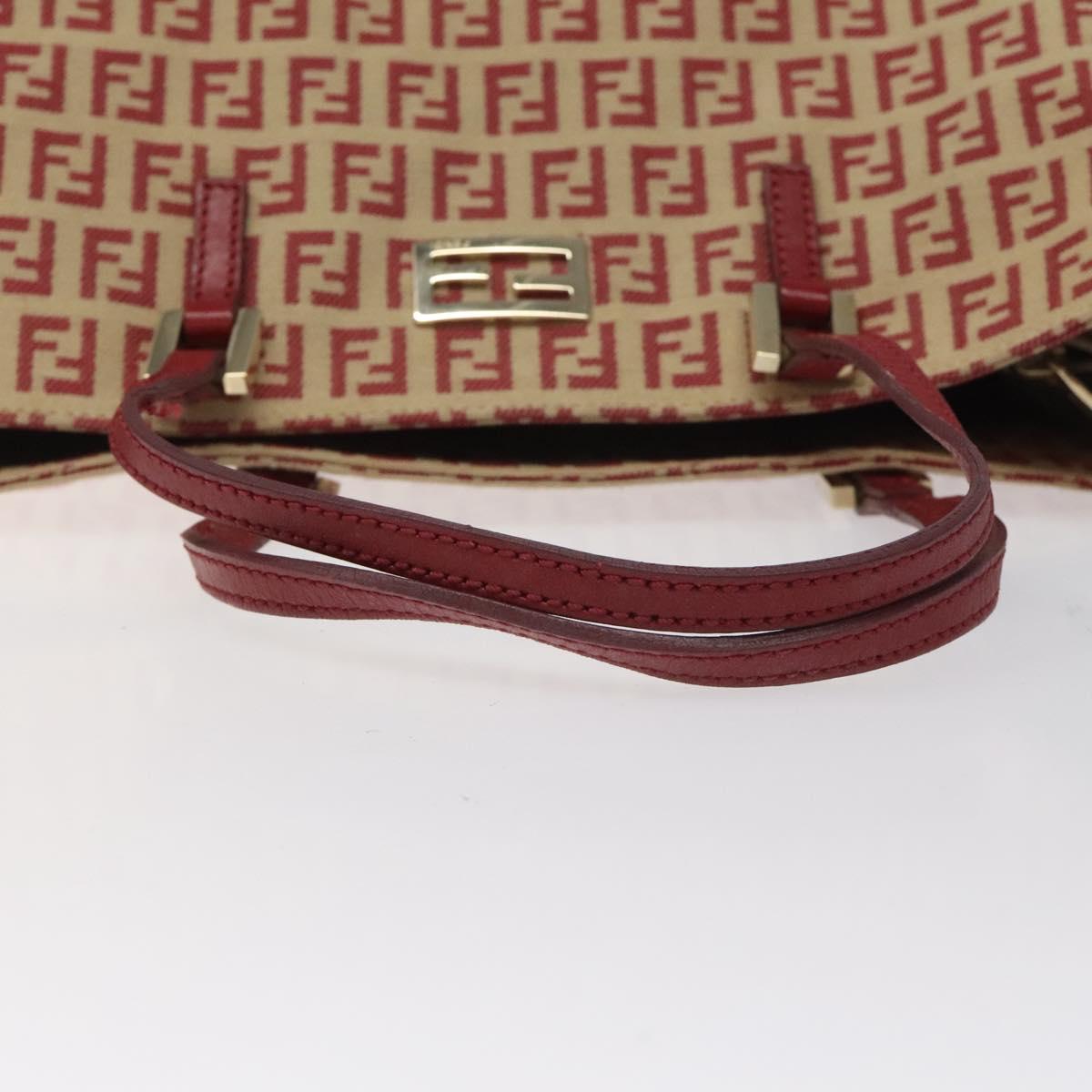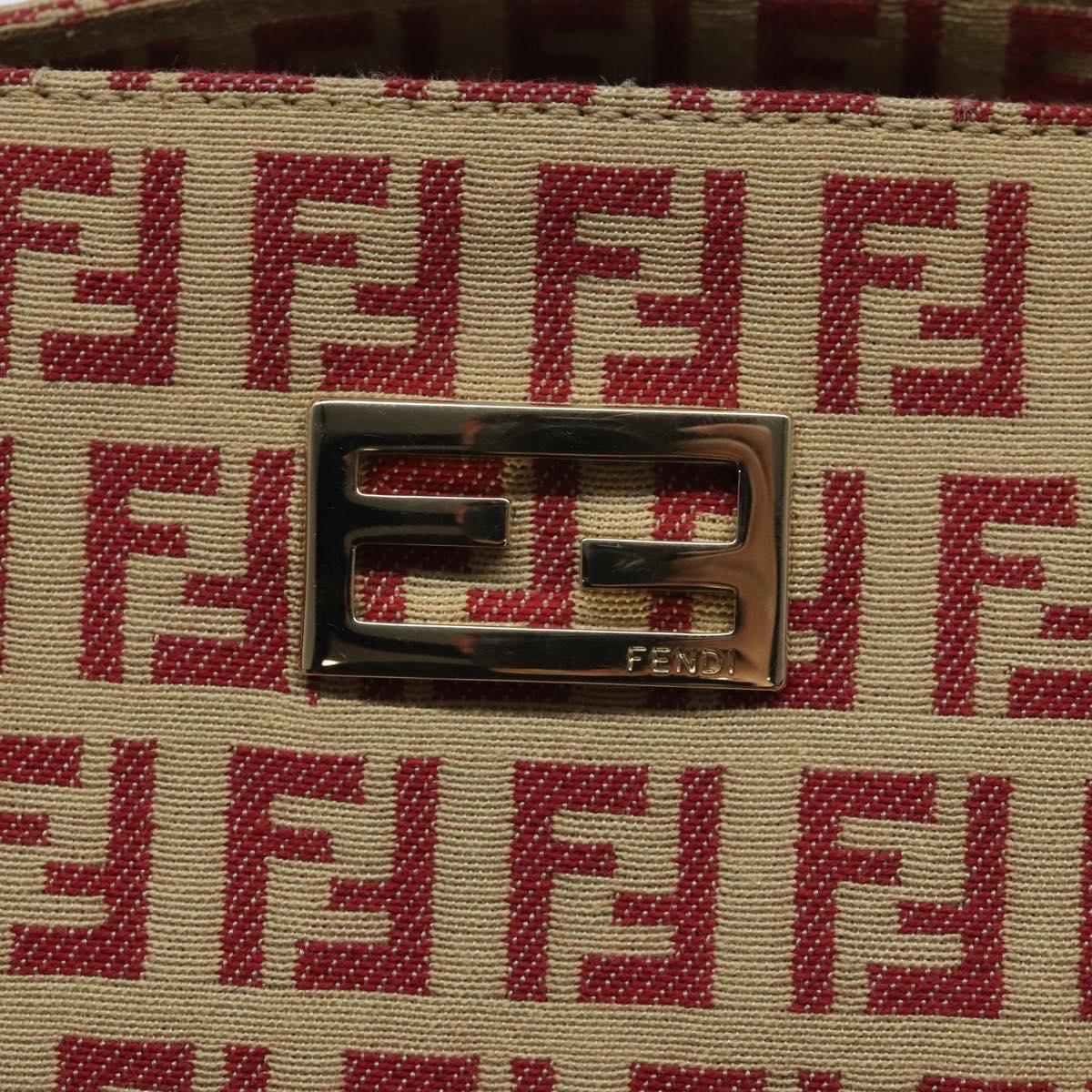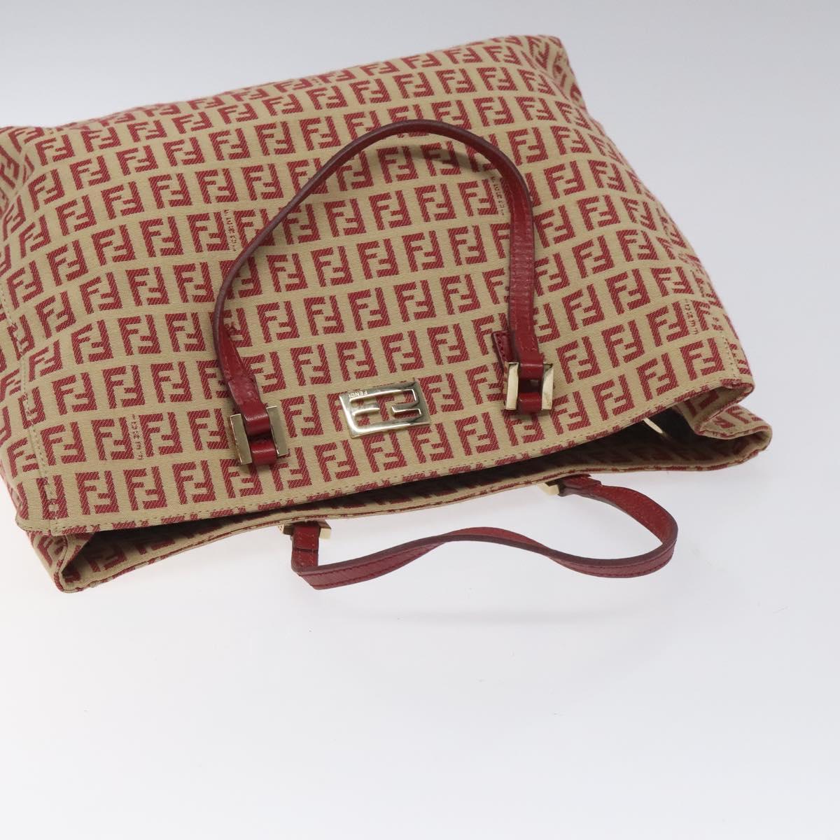 FENDI Zucchino Canvas Tote Bag Red Beige gold Auth 115773