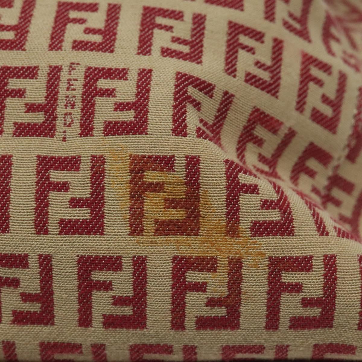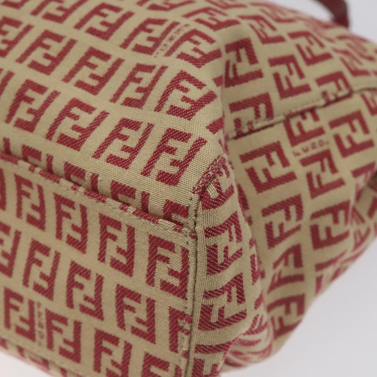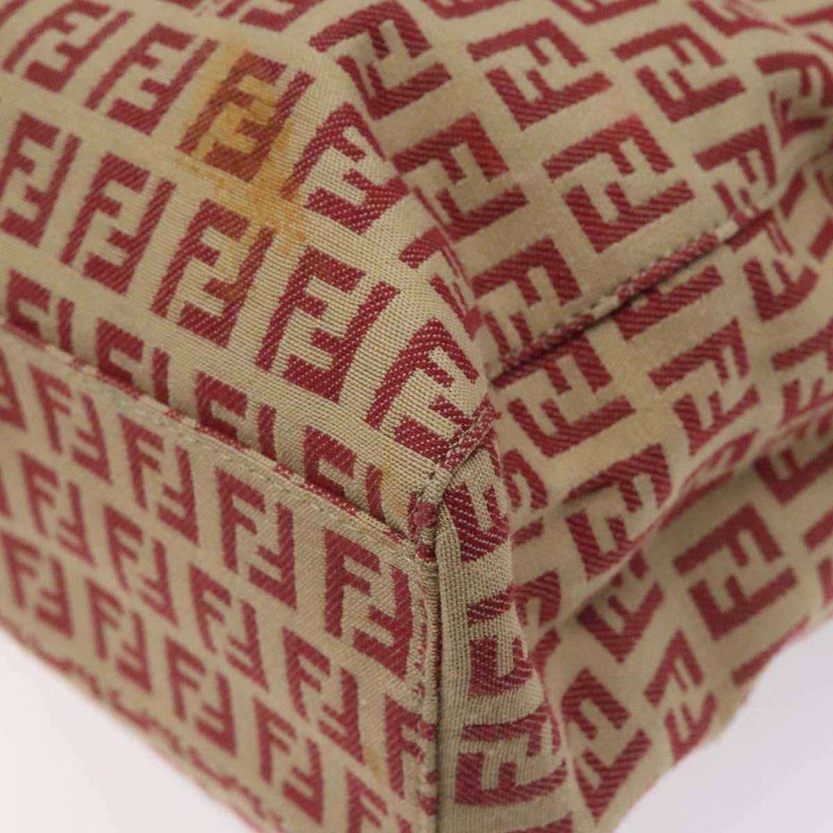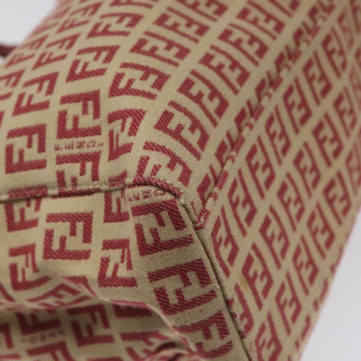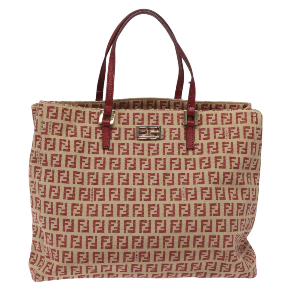 FENDI Zucchino Canvas Tote Bag Red Beige gold Auth 115773