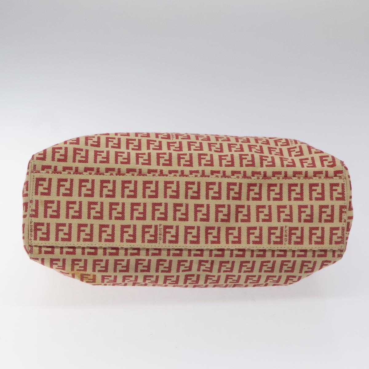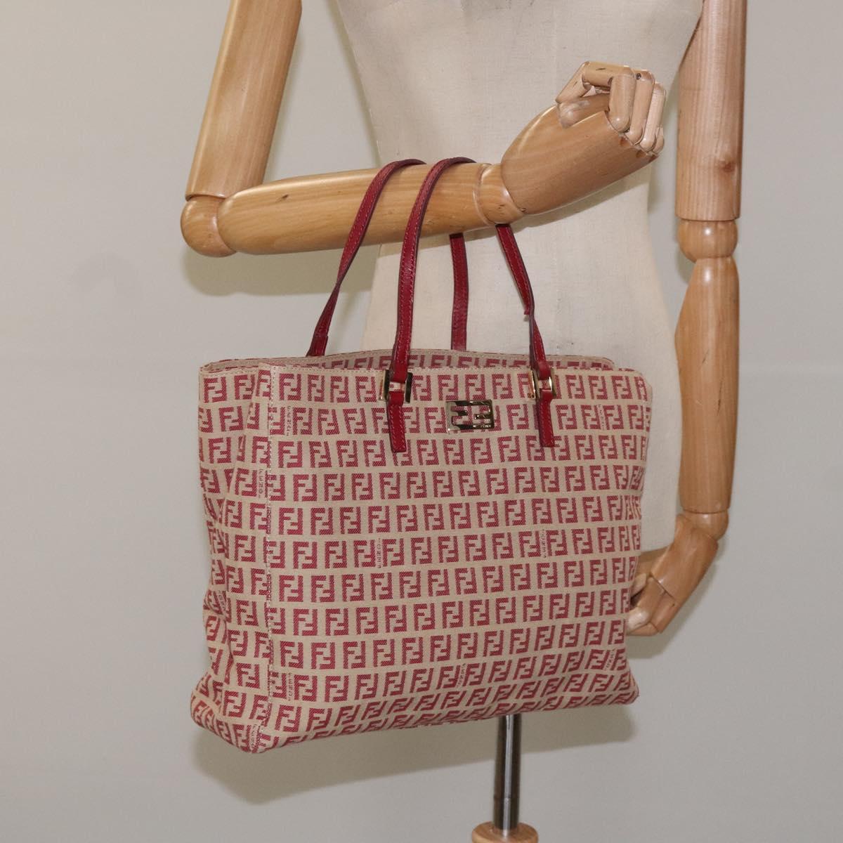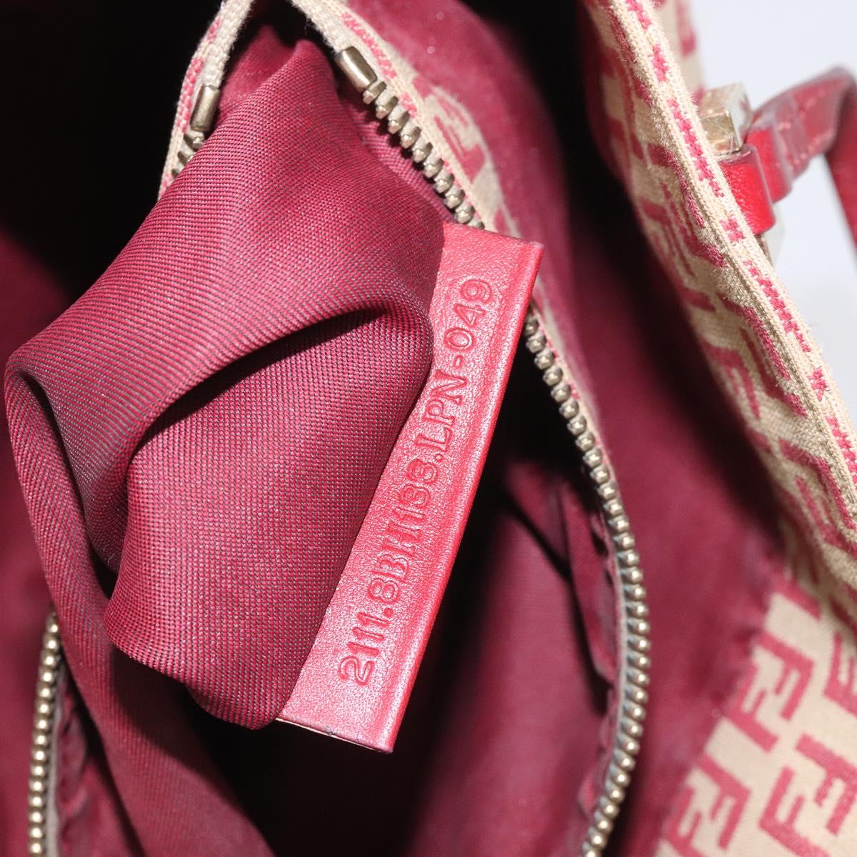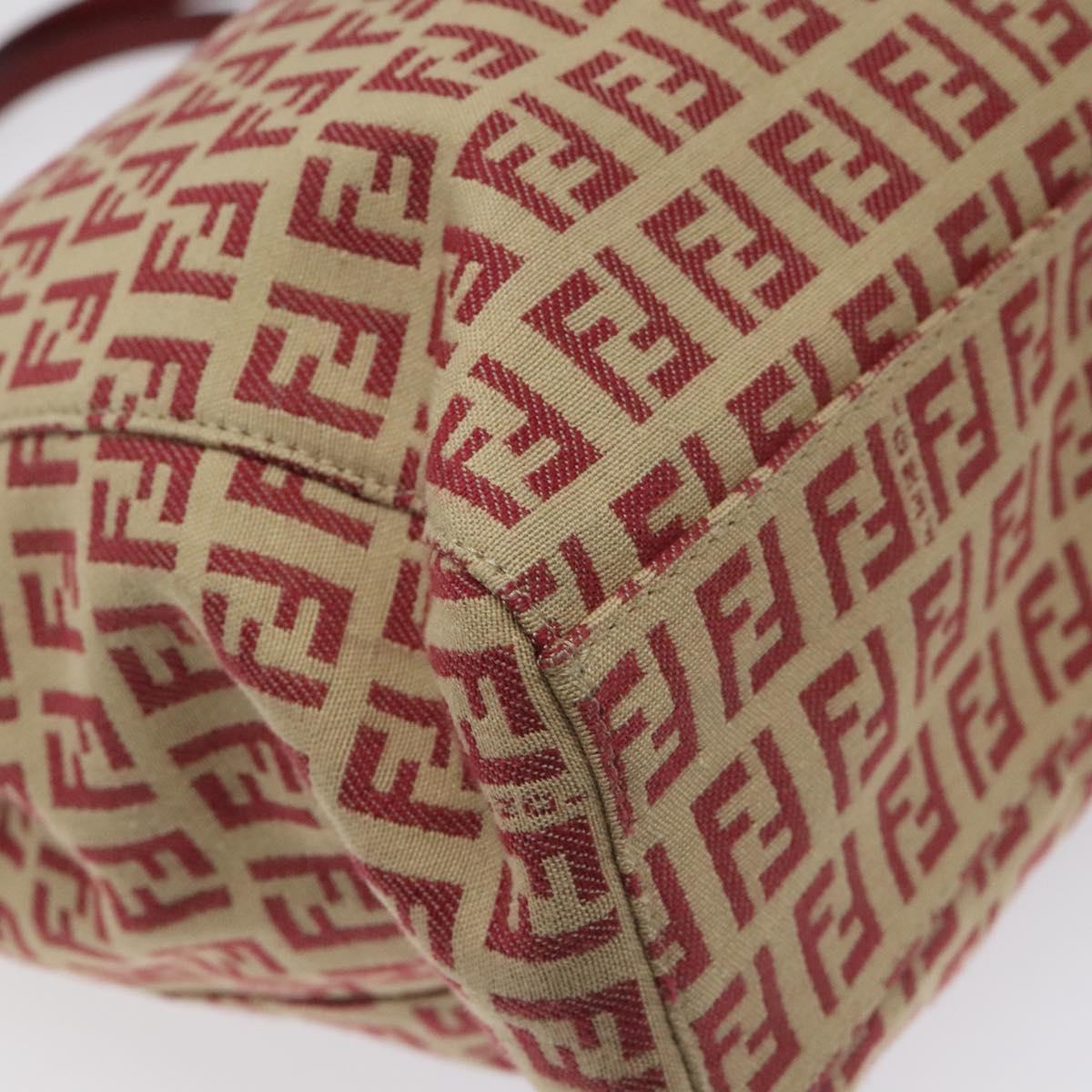 FENDI Zucchino Canvas Tote Bag Red Beige gold Auth 115773