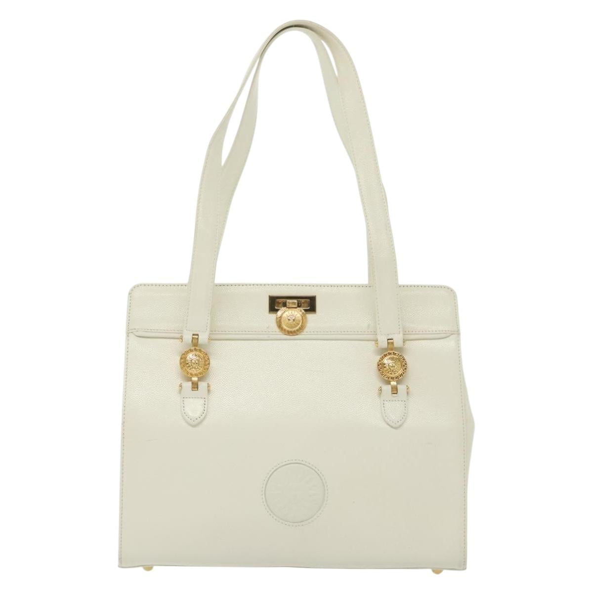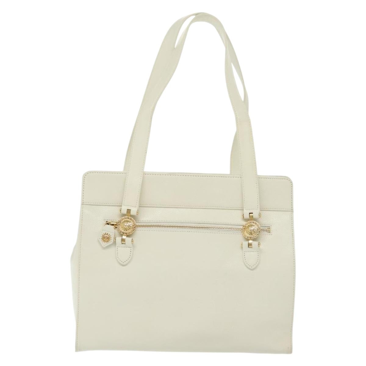 Gianni Versace Shoulder Bag Leather White Gold Auth yk19420
