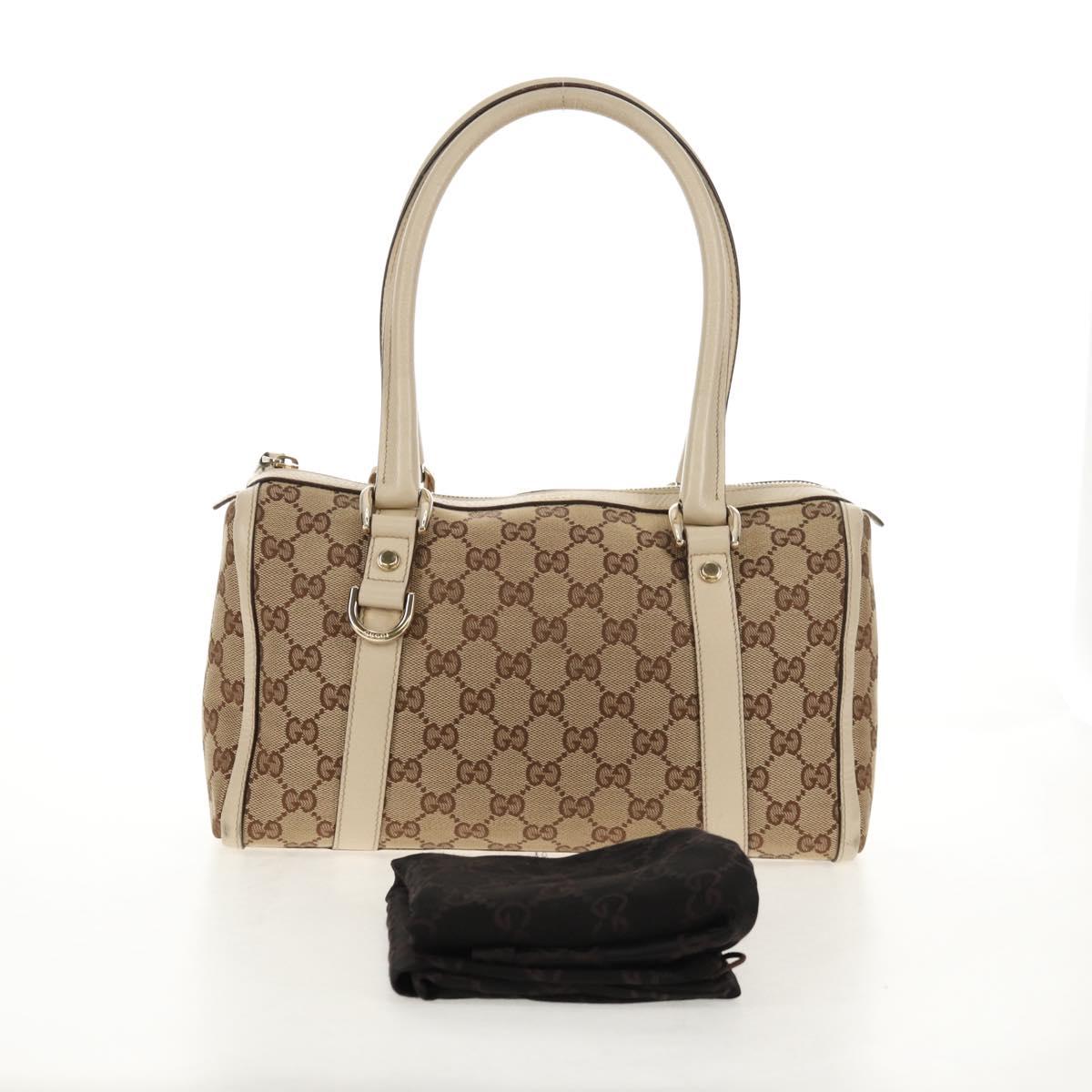 GUCCI Abbey GG Canvas Boston Bag Beige Gold 130942 Auth 145250V