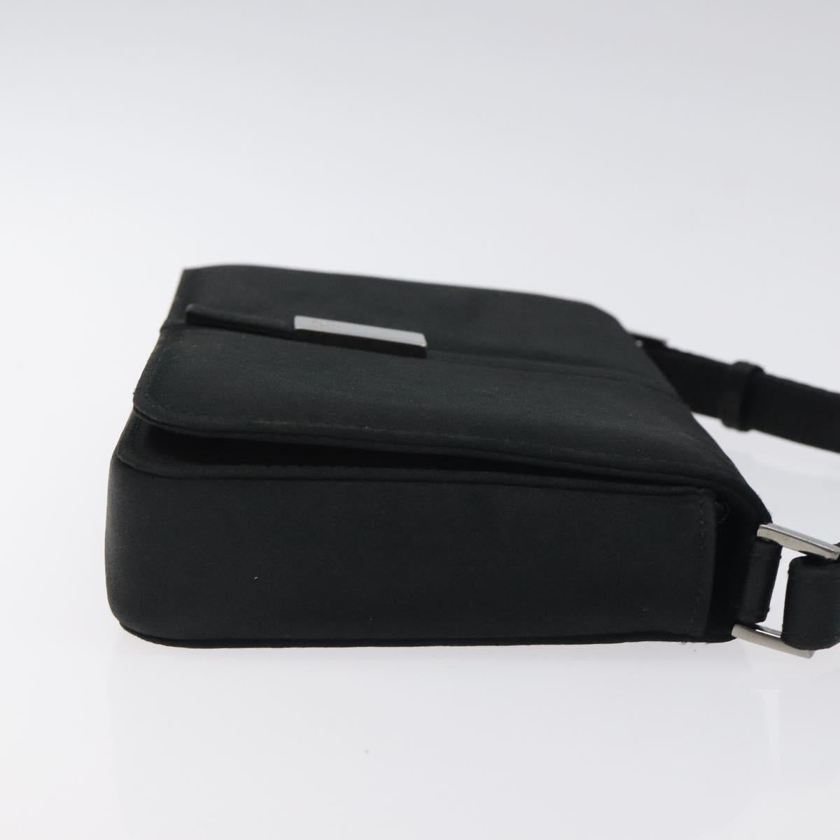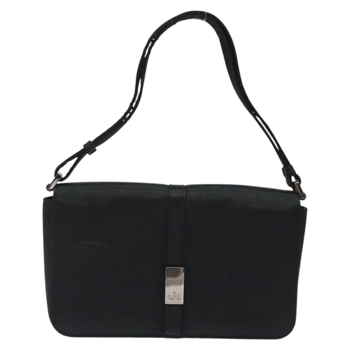 GUCCI Accessory Pouch Satin Black Silver Auth 127027