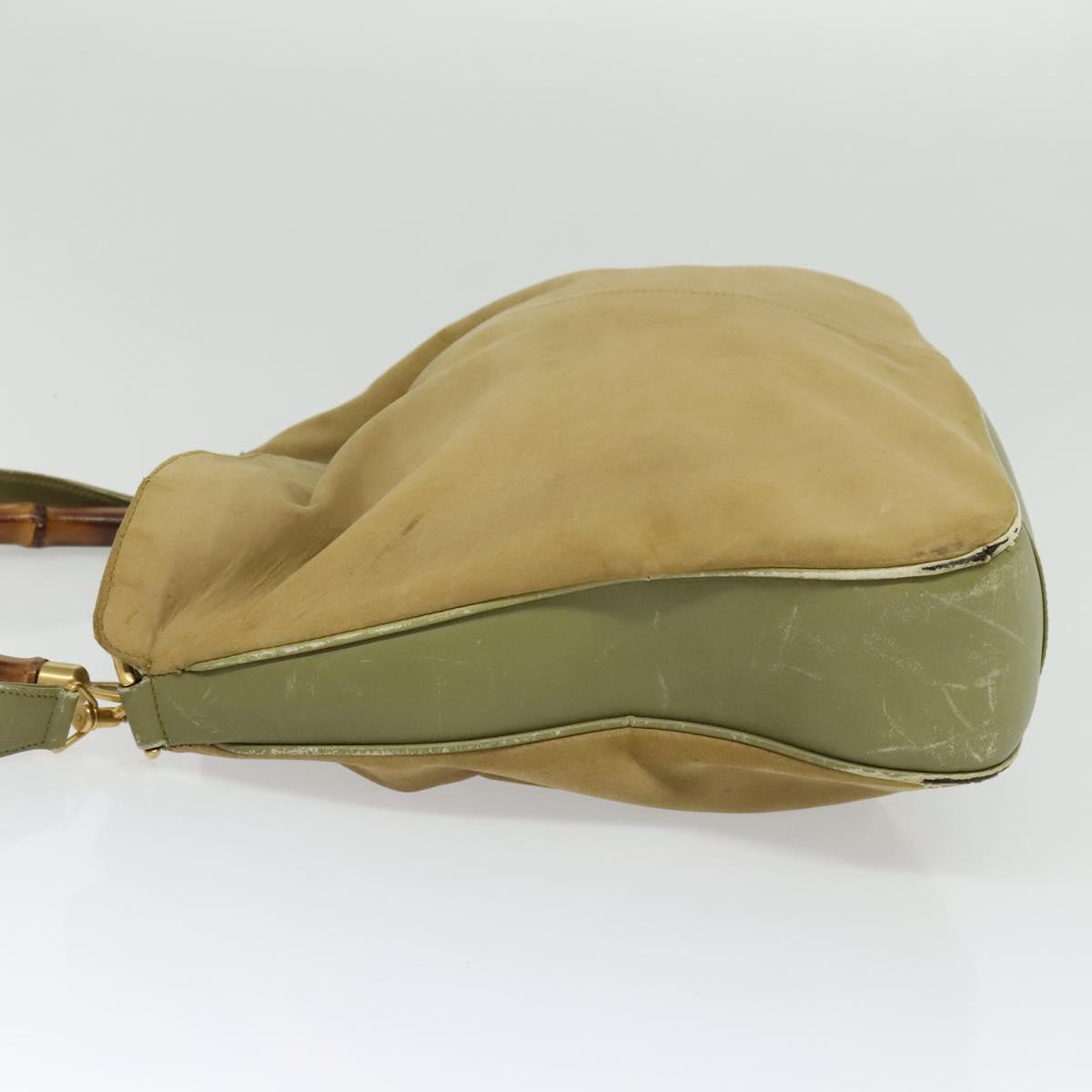 GUCCI Bamboo 2Way Shoulder Bag Suede Beige Gold 001 58 1577 Auth 135624