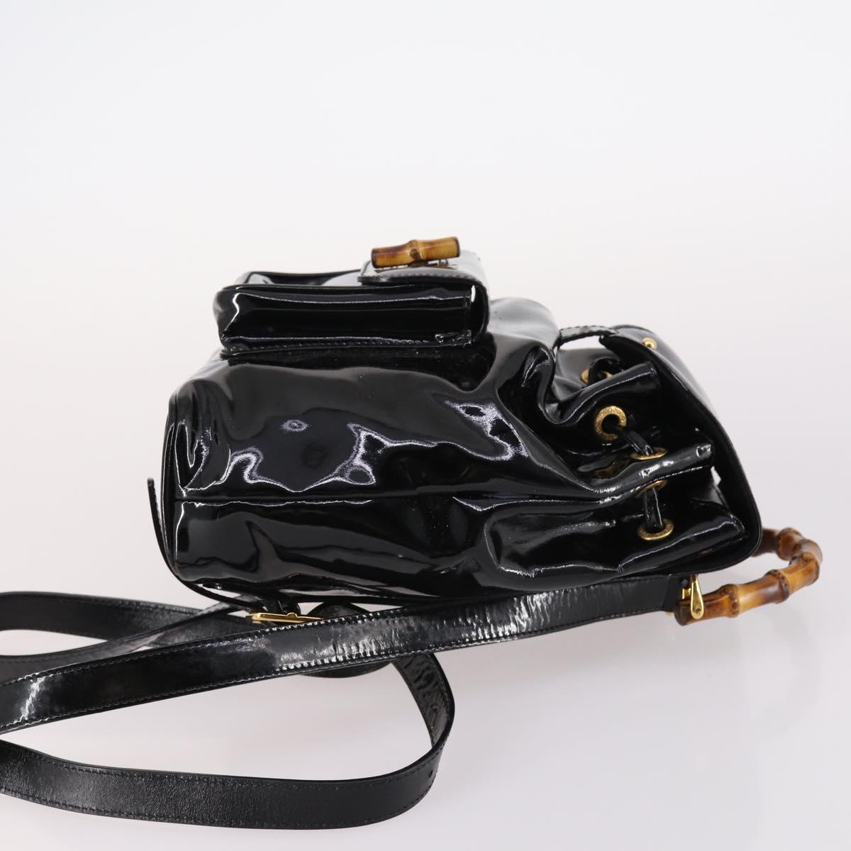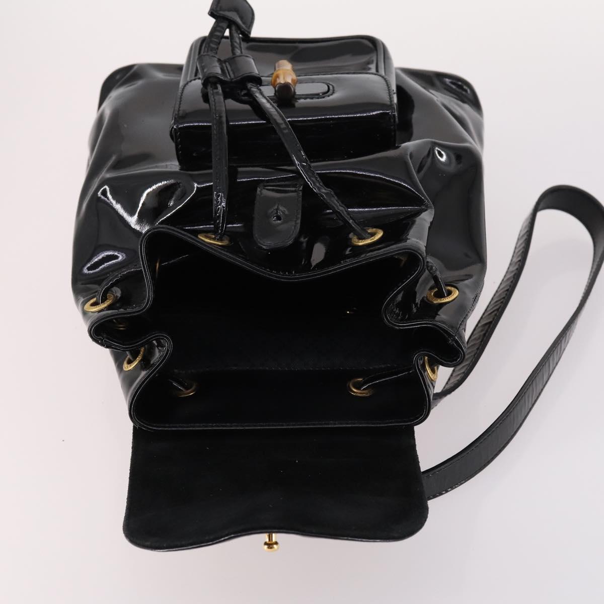 GUCCI Bamboo Backpack Enamel Black Gold 003 2058 0030 Auth bs29262