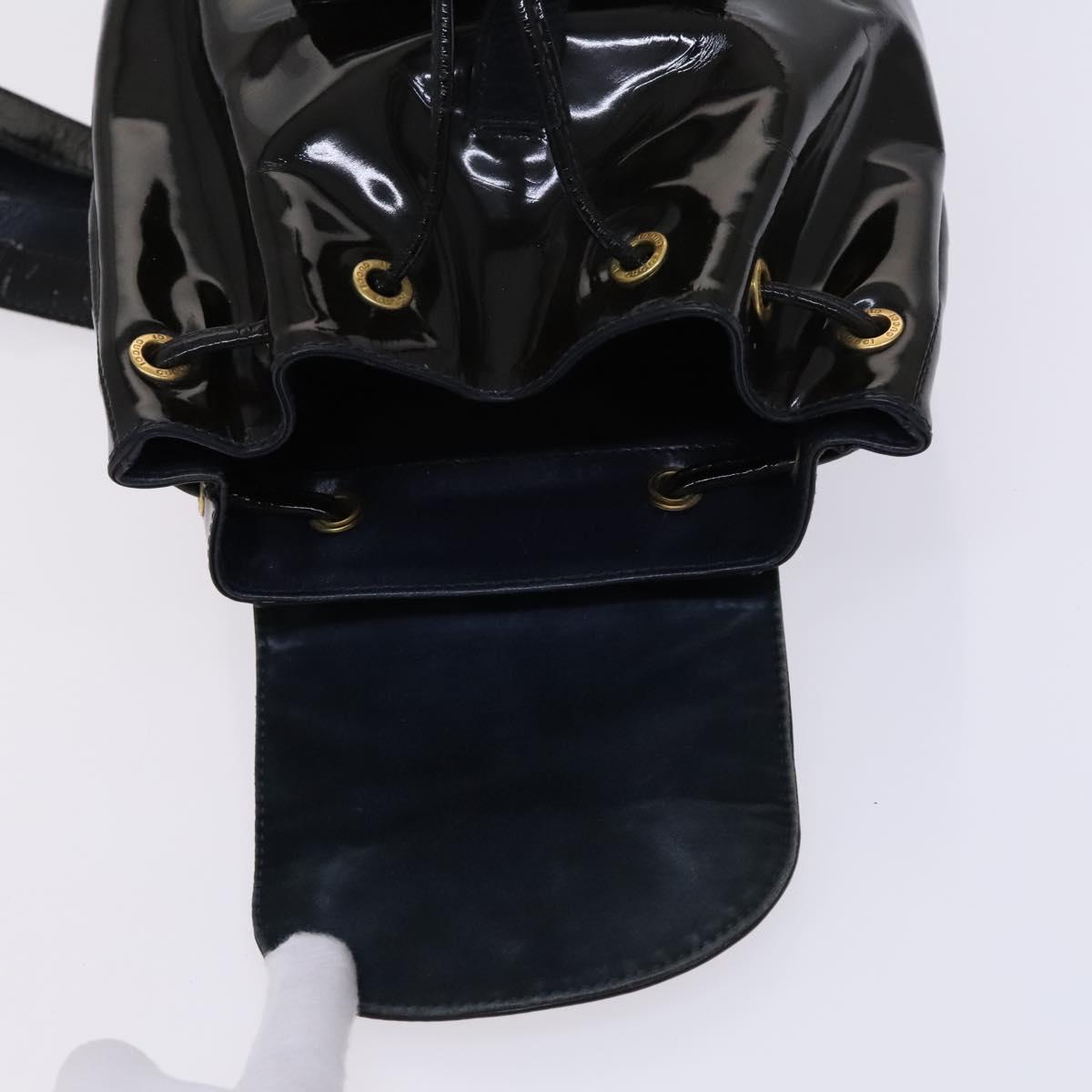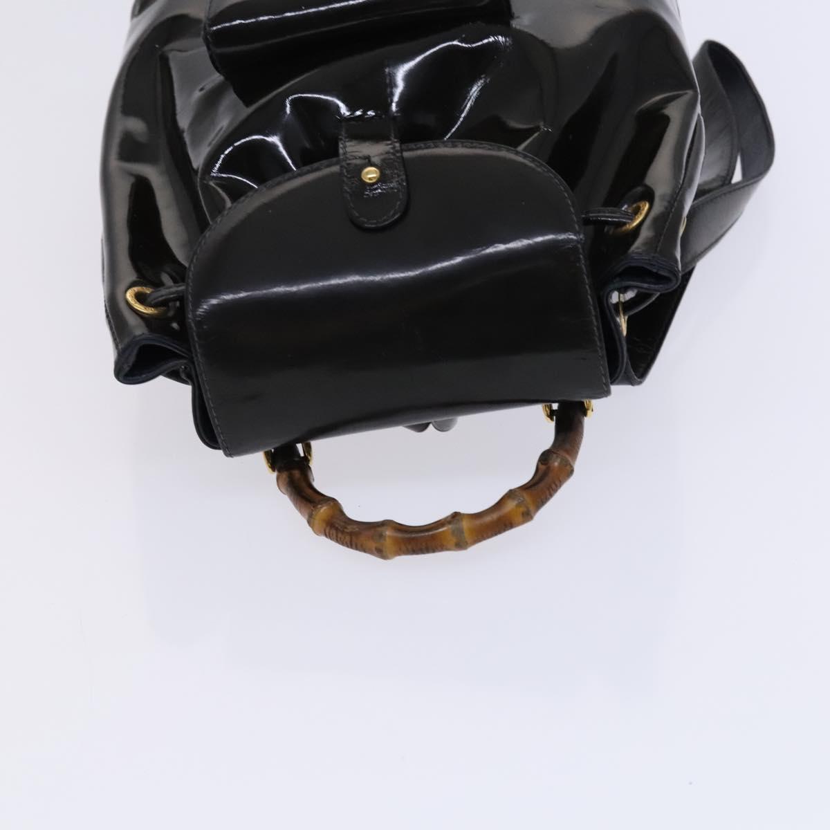 GUCCI Bamboo Backpack Enamel Black Gold Auth bs23155