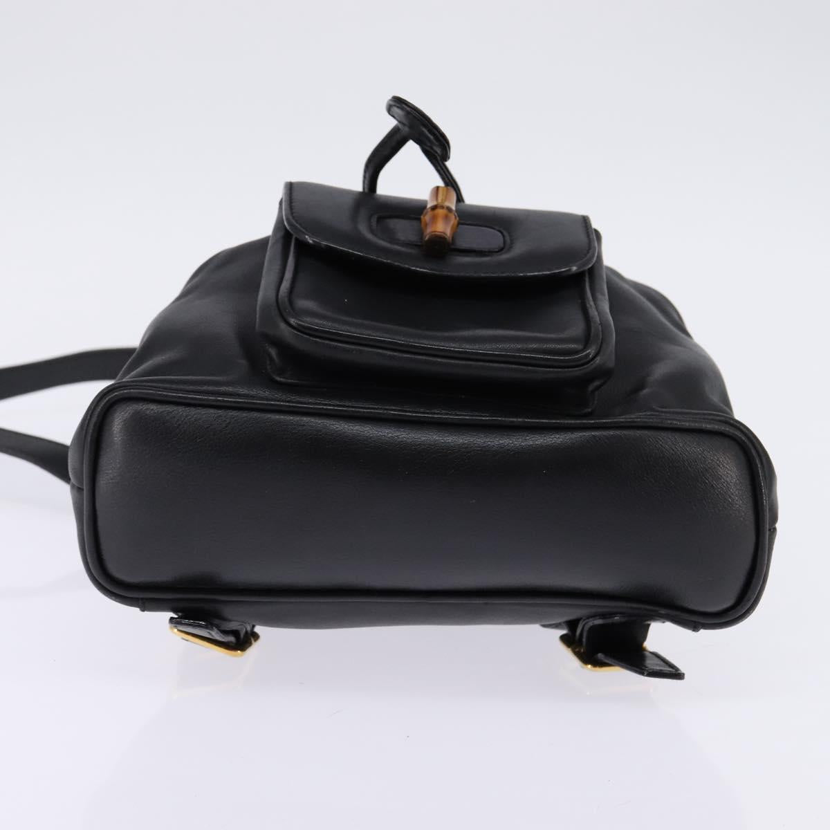 GUCCI Bamboo Backpack Leather Black Gold 003 1705 0030 Auth BA6050