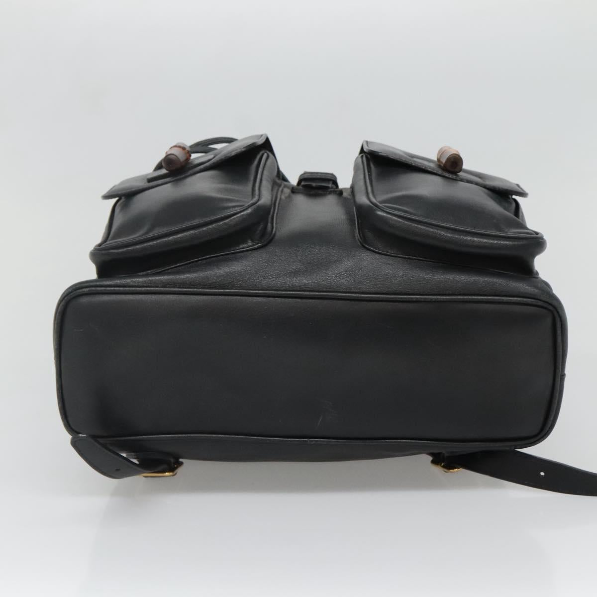 GUCCI Bamboo Backpack Leather Black Gold 003 2058 0016 Auth 136184