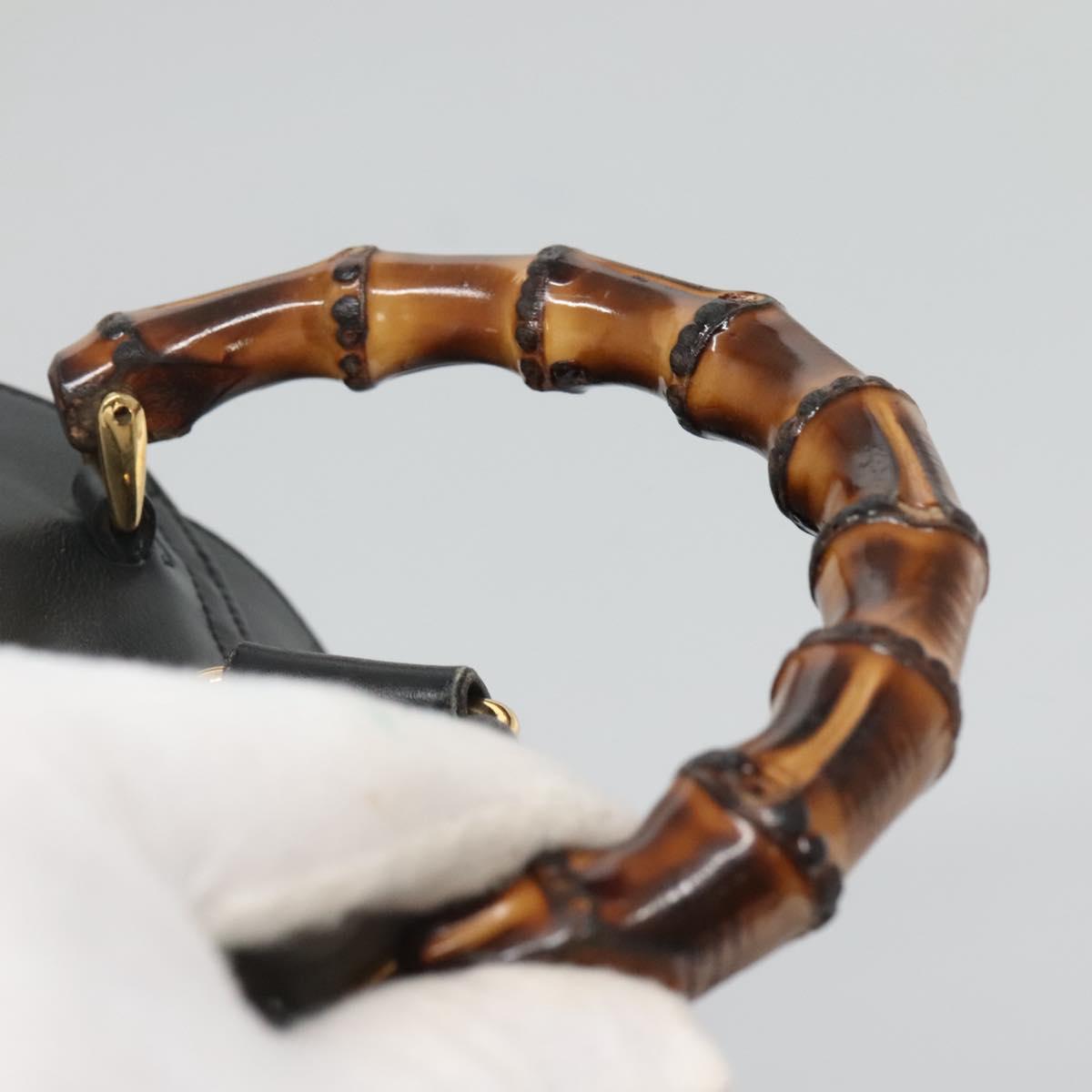GUCCI Bamboo Backpack Leather Black Gold 008 2058 0016 Auth am8855