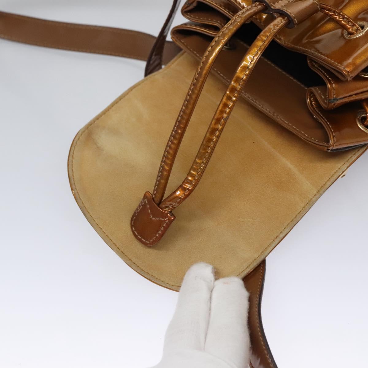GUCCI Bamboo Backpack Patent leather Bronze Gold 003 1705 0030 Auth nb030