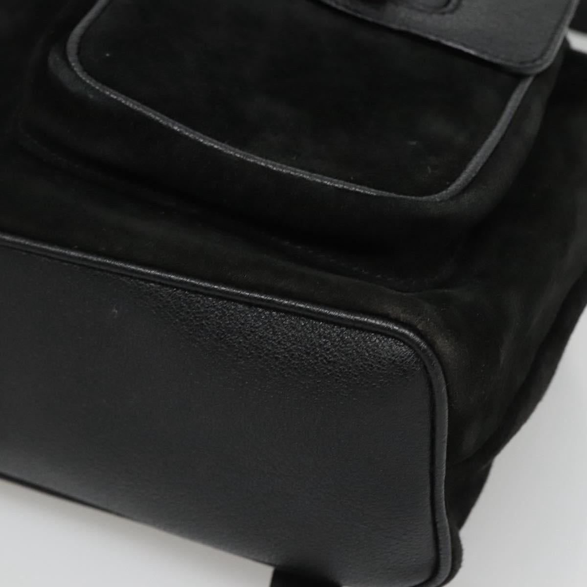 GUCCI Bamboo Backpack Suede Black Gold Auth 120117