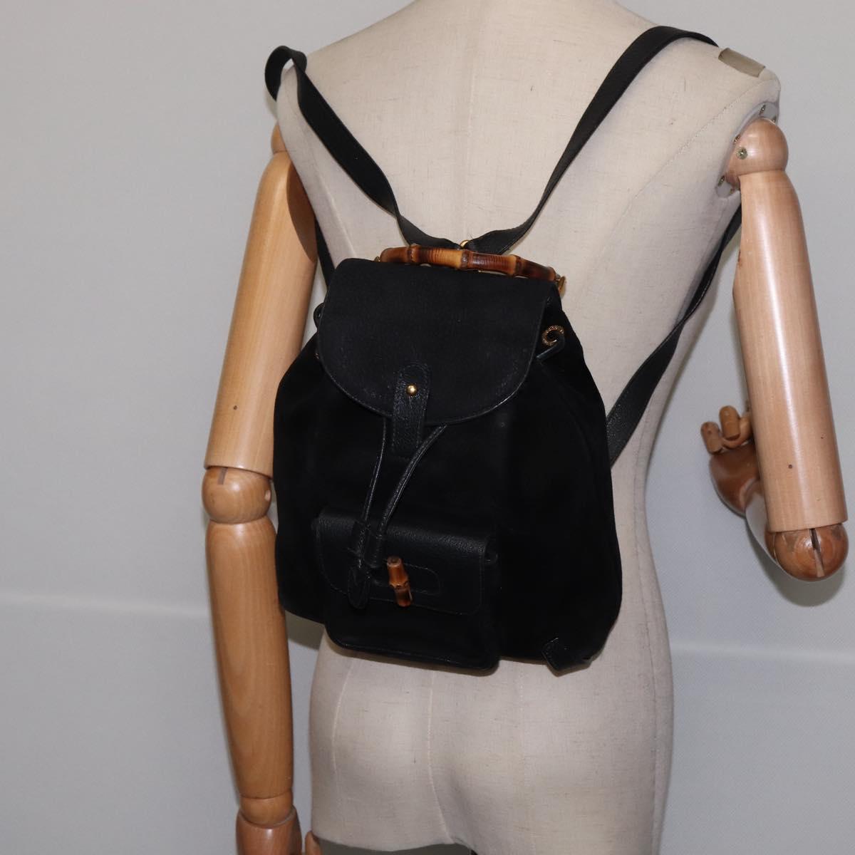GUCCI Bamboo Backpack Suede Leather Black Gold 003 1705 0030 Auth gh811