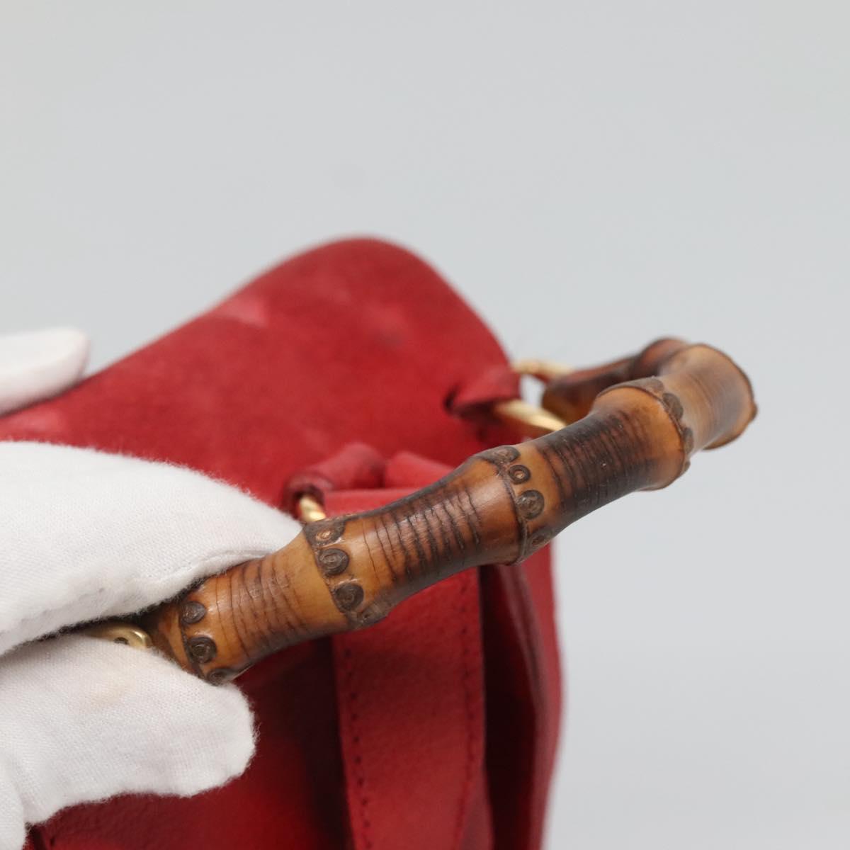 GUCCI Bamboo Backpack Suede Leather Red Gold 003 58 0030 Auth ar13675