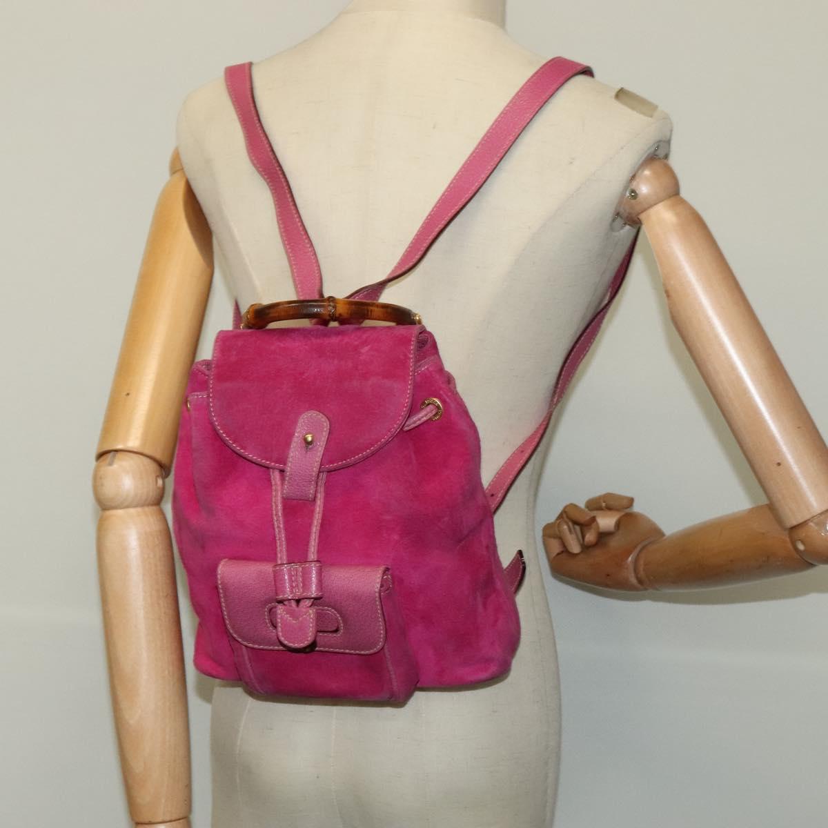 GUCCI Bamboo Backpack Suede Pink Gold 003 1705 0030 Auth BA2480