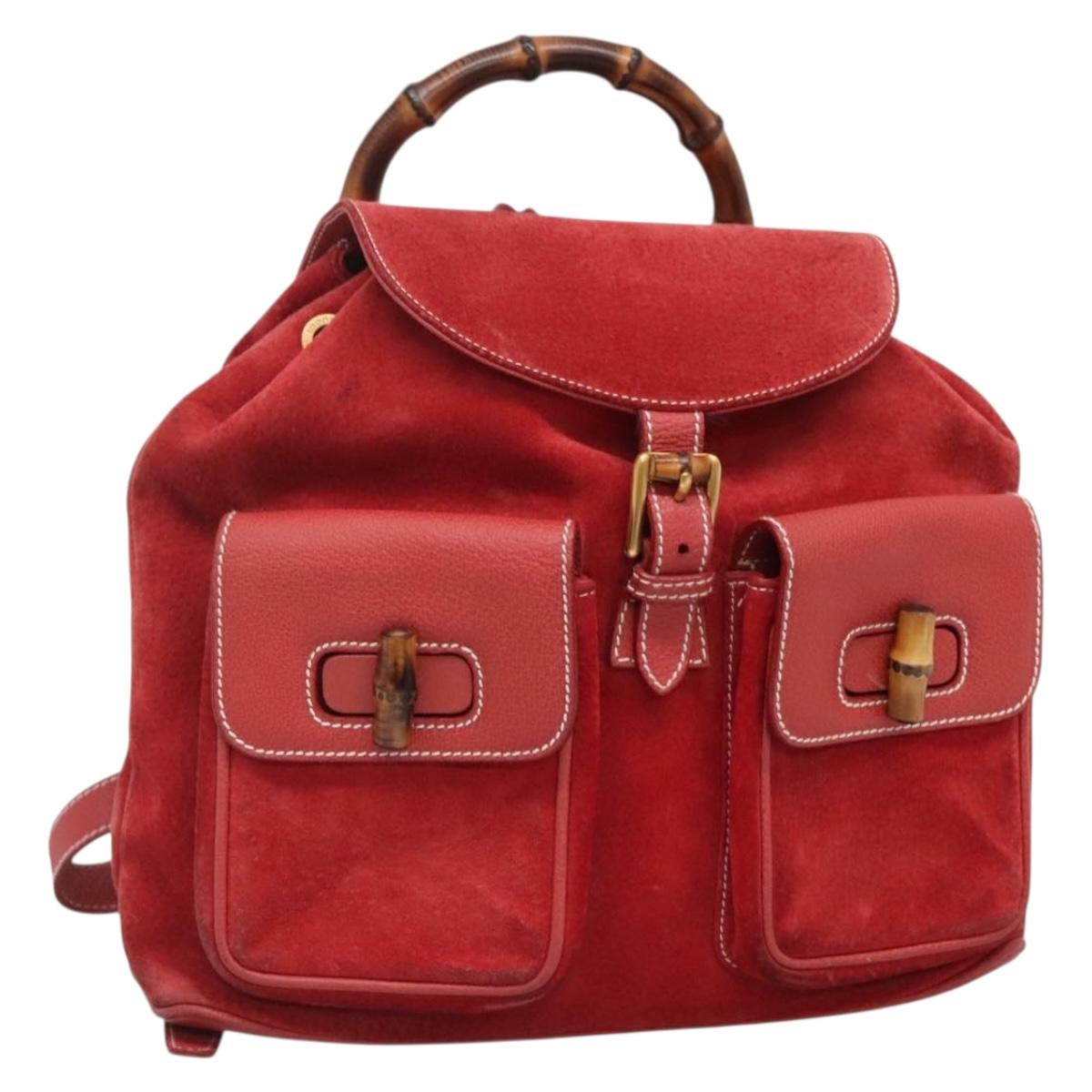 GUCCI Bamboo Backpack Suede Red Gold 003 2058 0016 Auth 136160