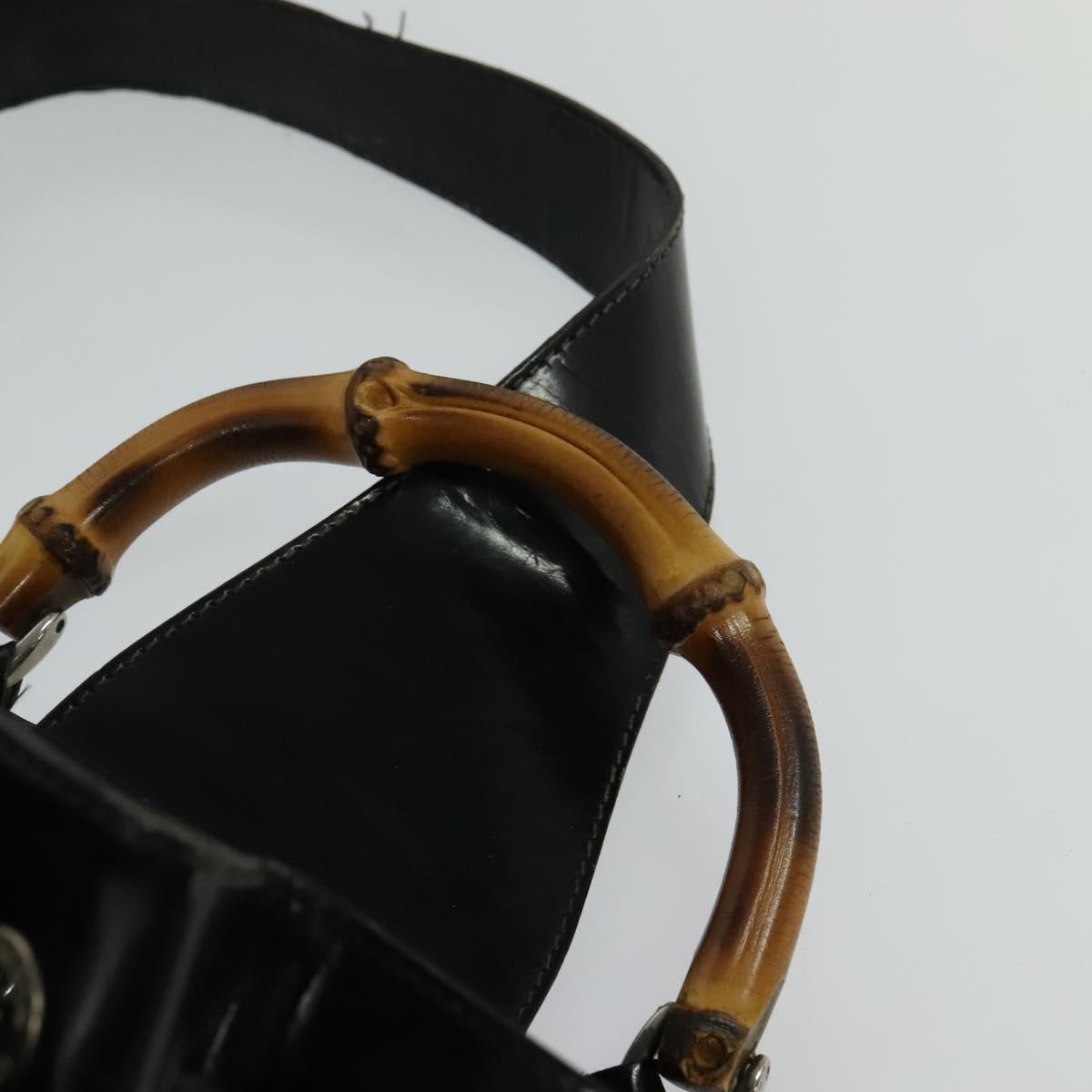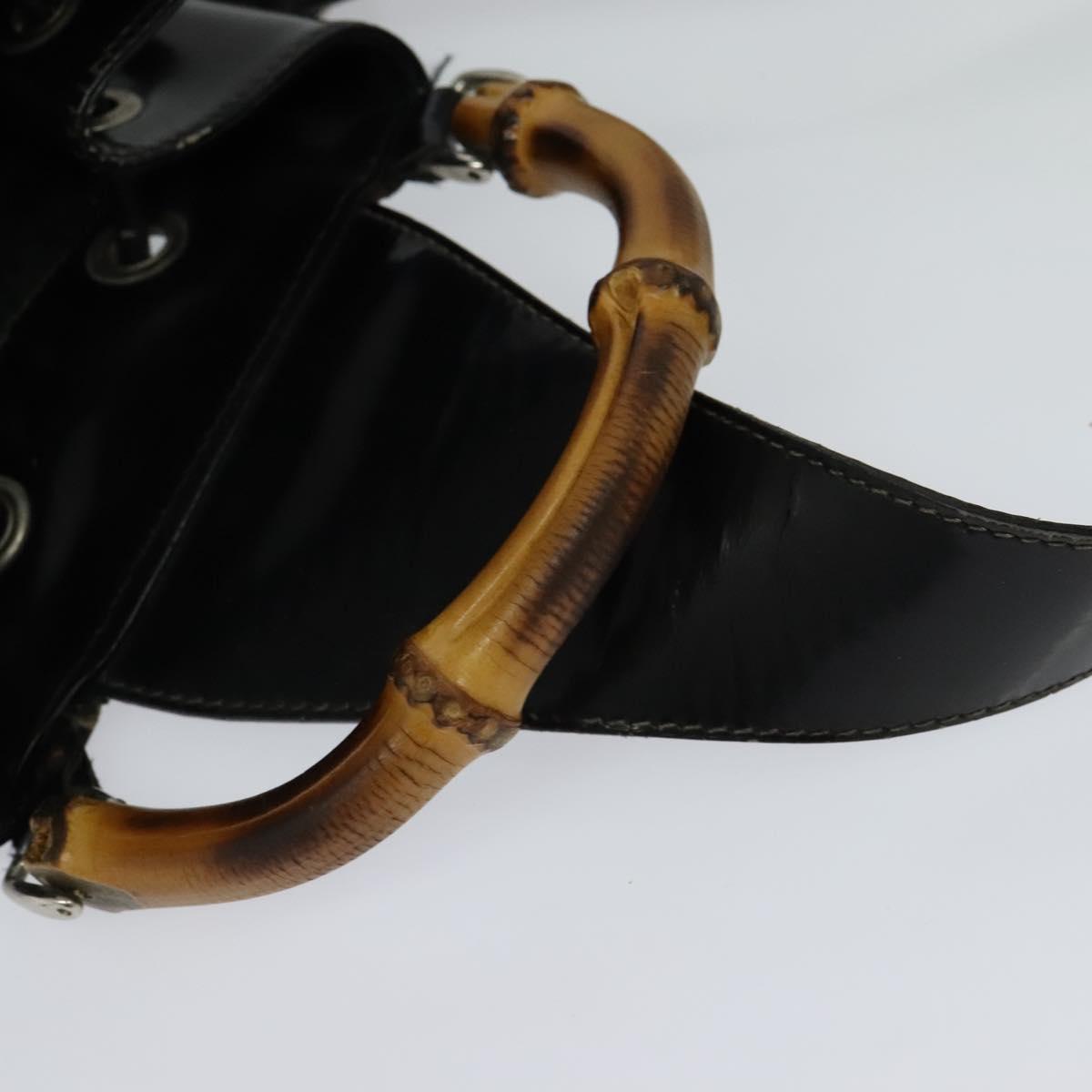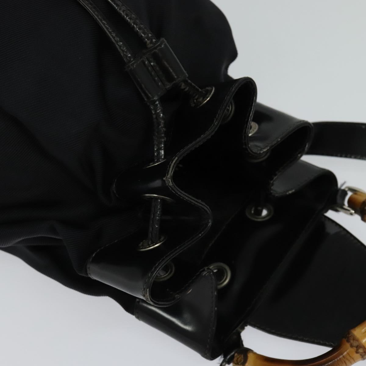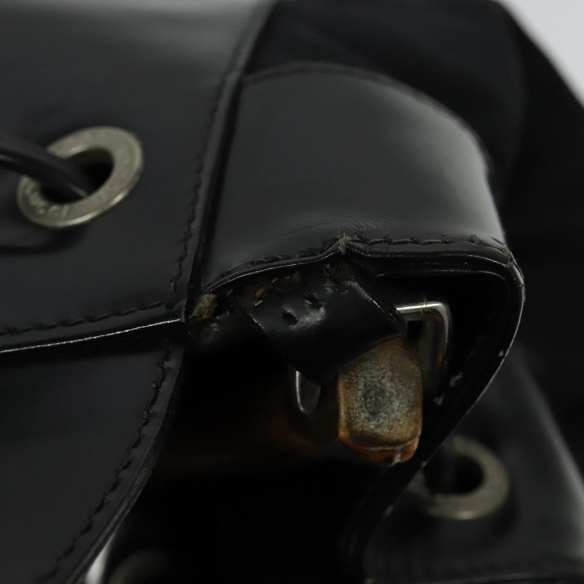 GUCCI Bamboo Body Bag Nylon Patent Leather Black Silver Auth bs22242
