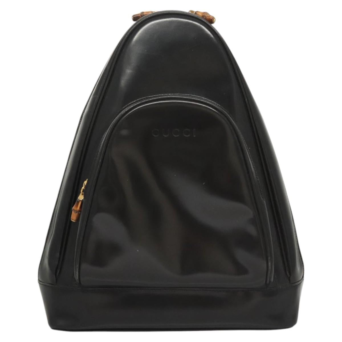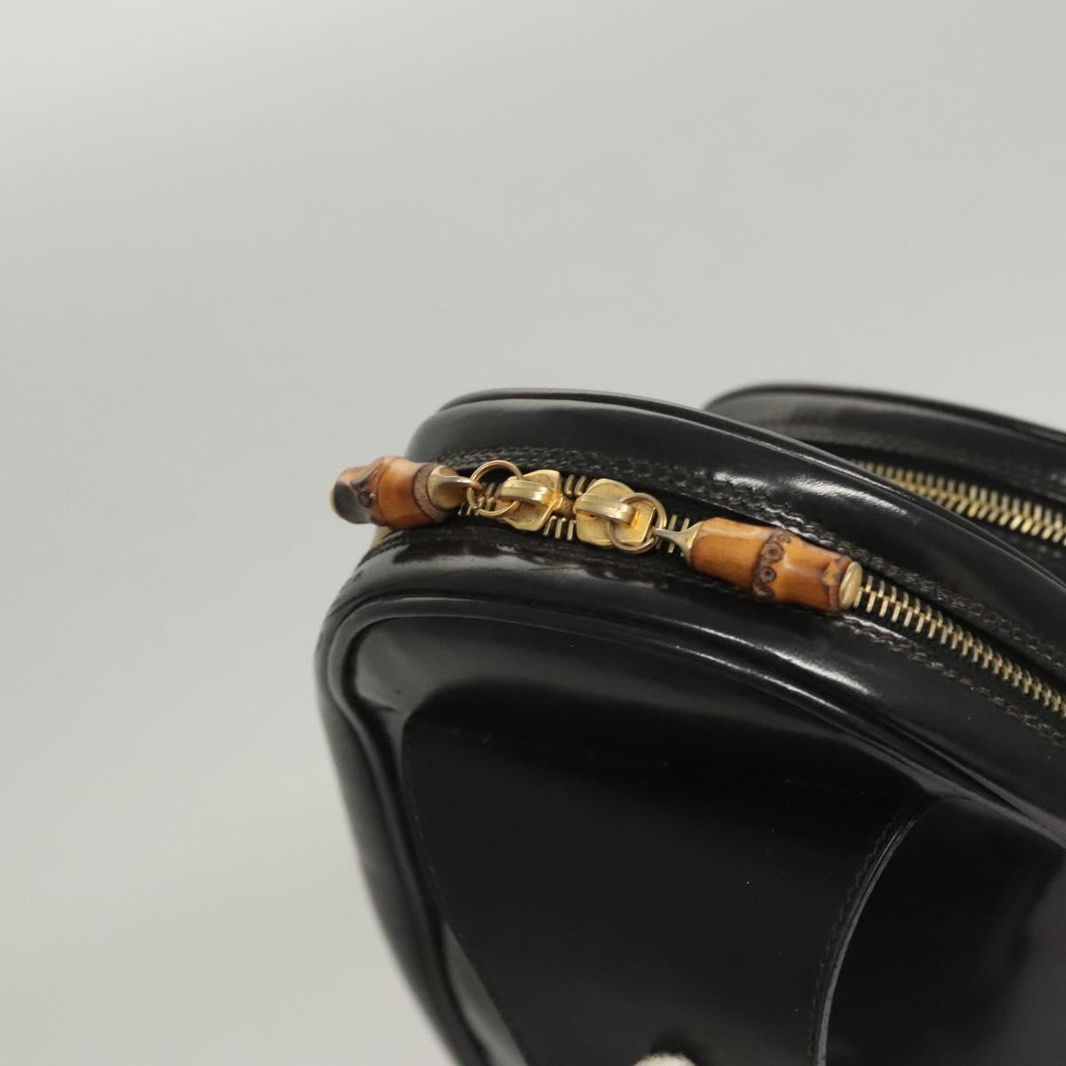 GUCCI Bamboo Body Bag Patent leather Black Gold Auth ep8958