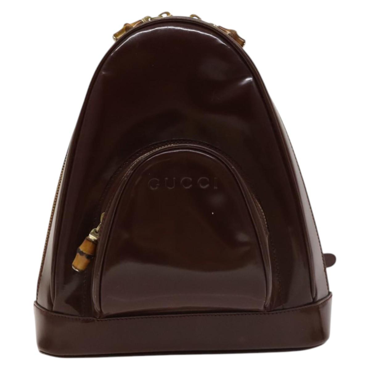 GUCCI Bamboo Body Bag Patent Leather Brown Gold 003 3444 0127 Auth 130177