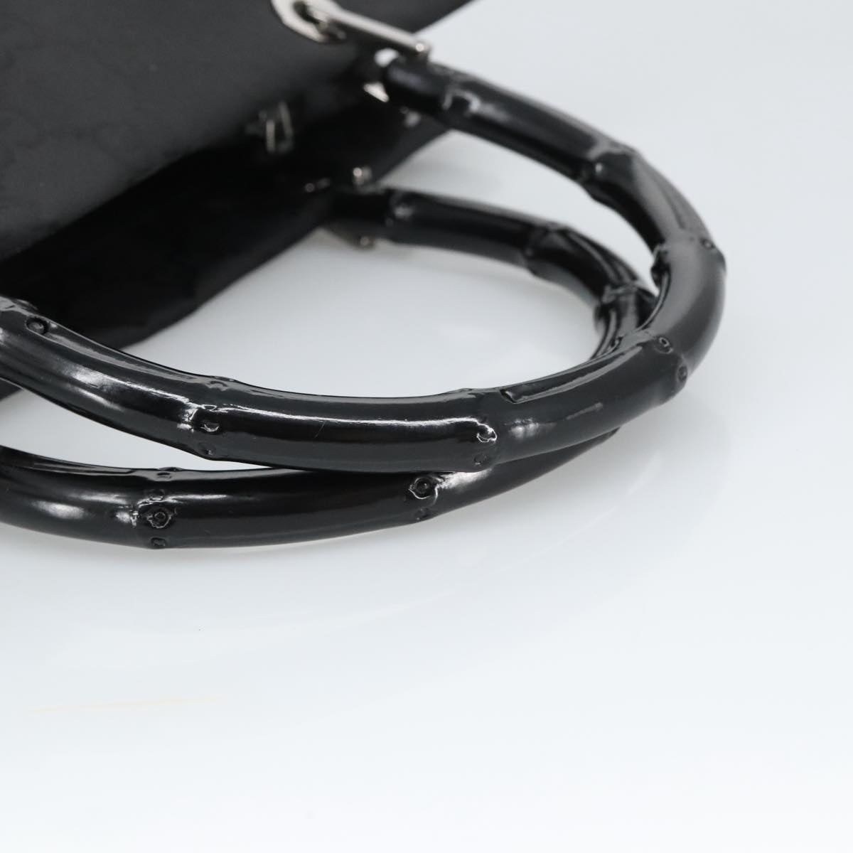 GUCCI Bamboo GG Canvas Hand Bag Nylon Black Silver 002 1016 2123 Auth ep6579