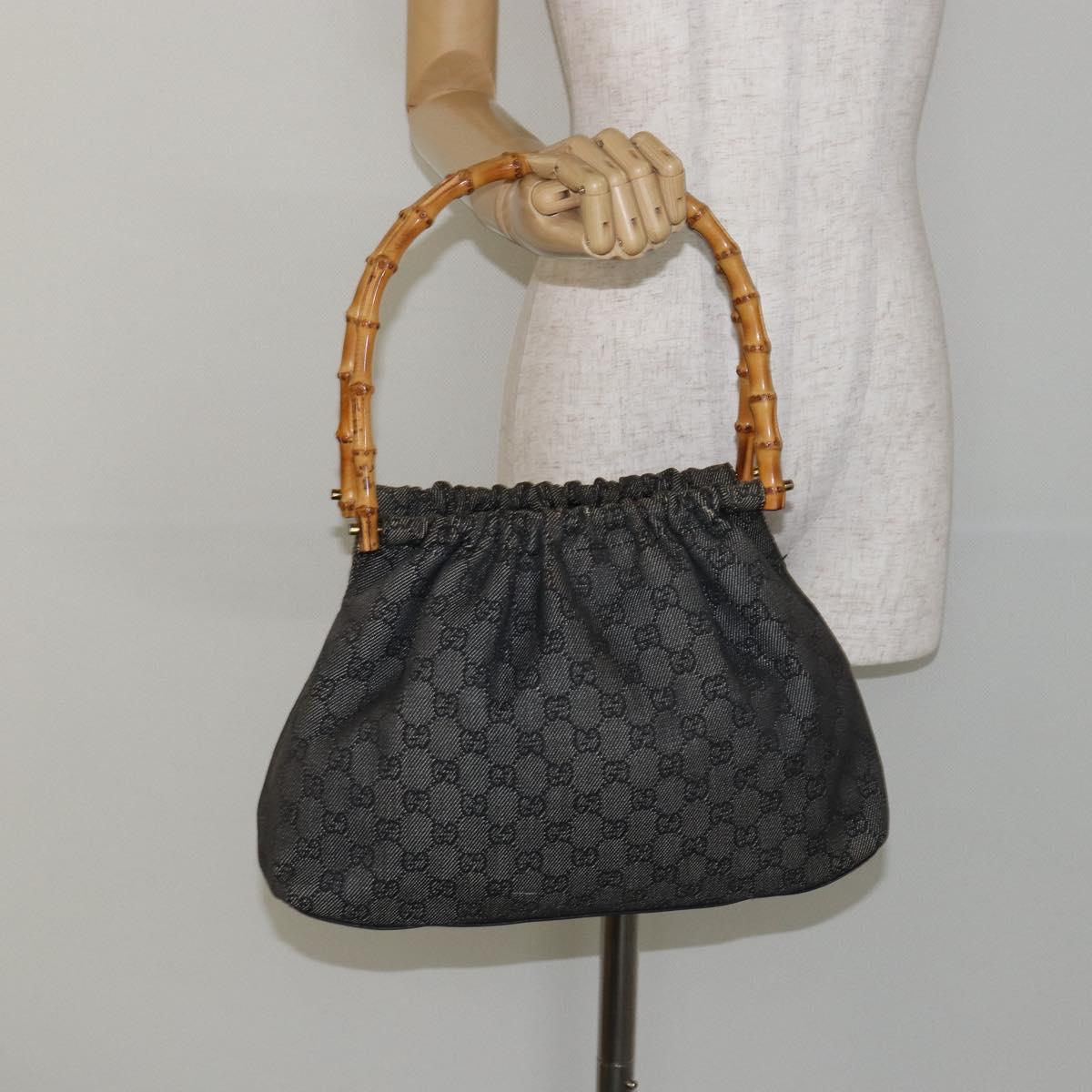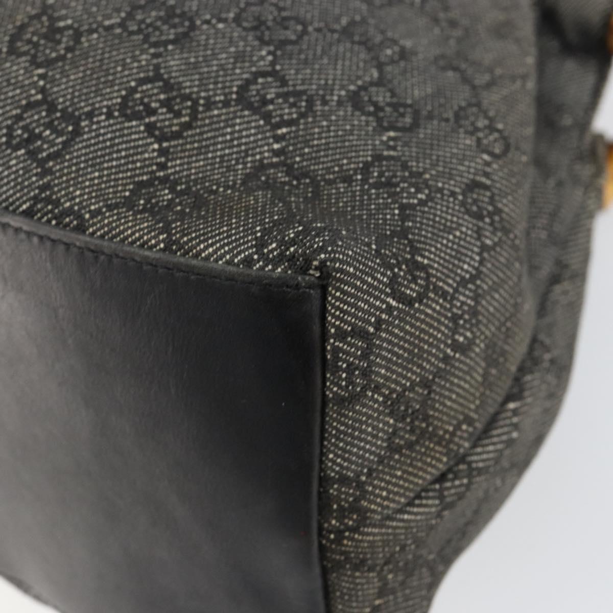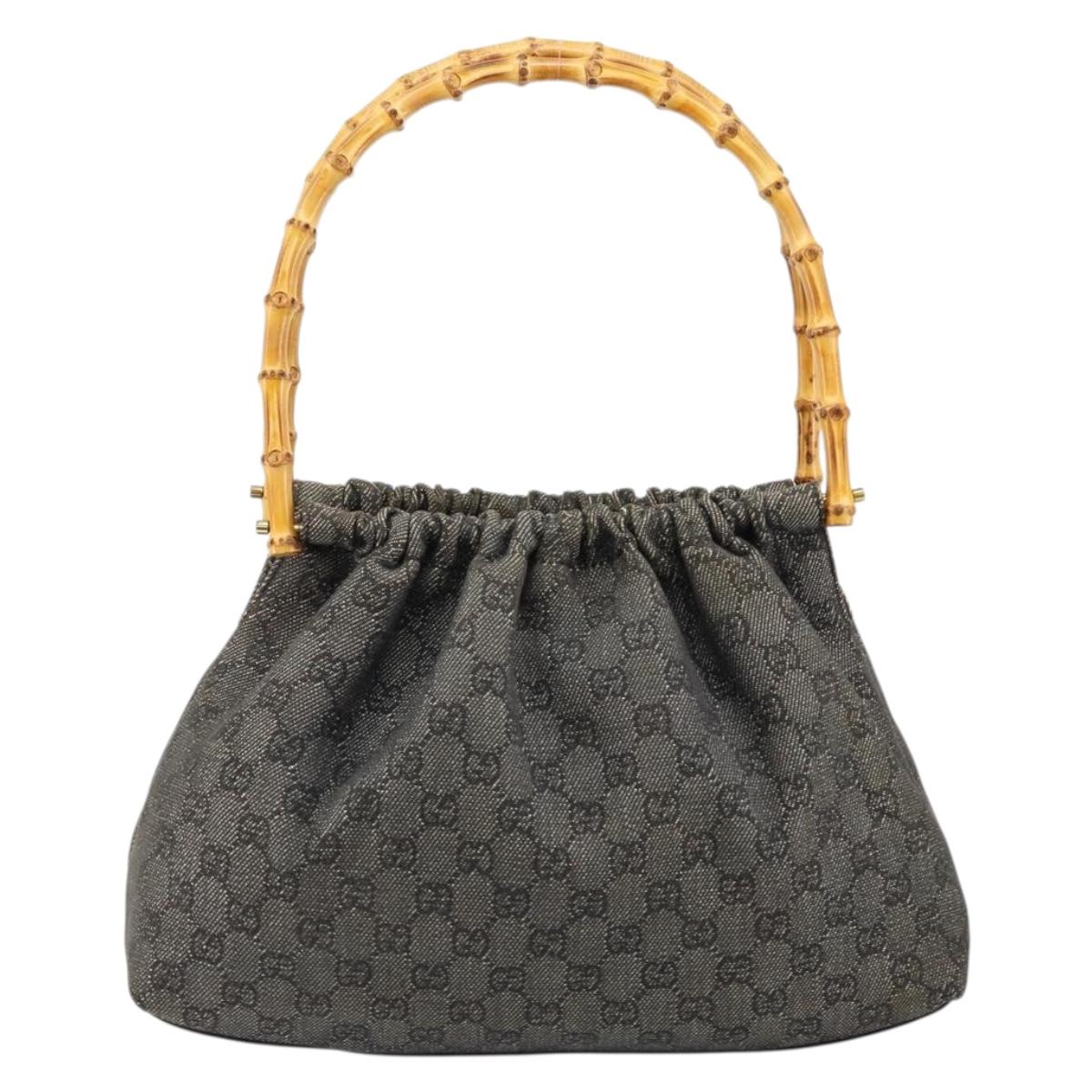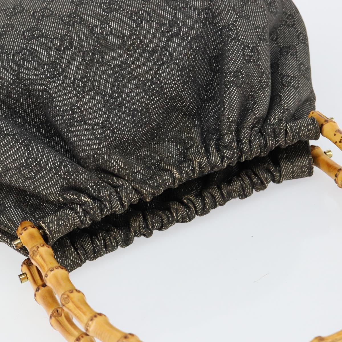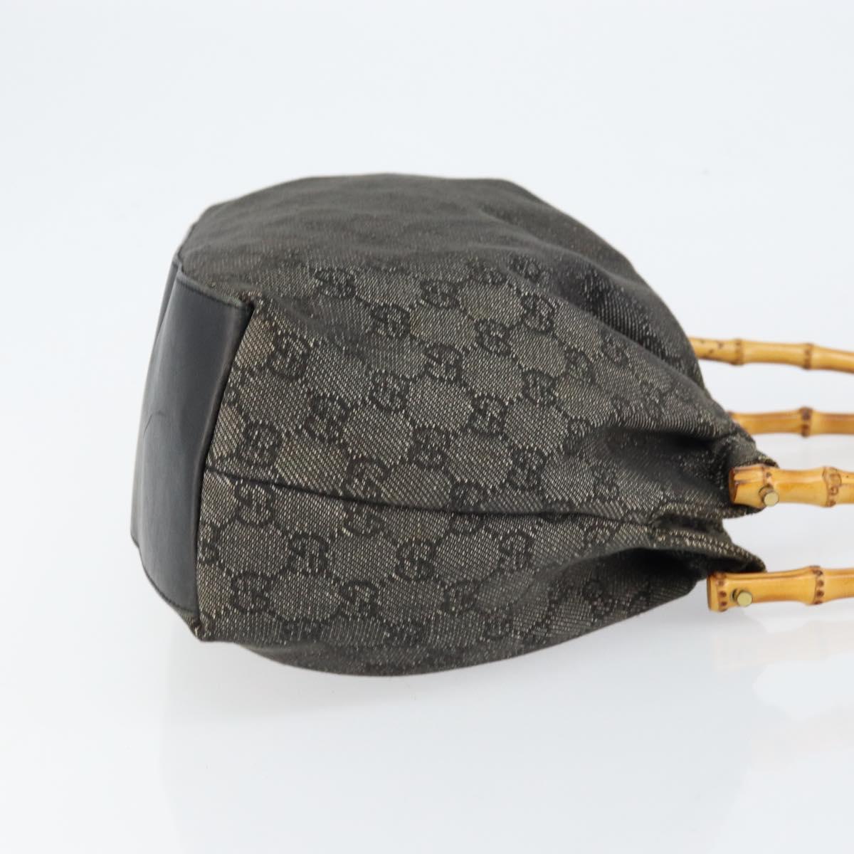 GUCCI Bamboo GG Canvas Shoulder Bag Black Gold 92708 Auth 145883