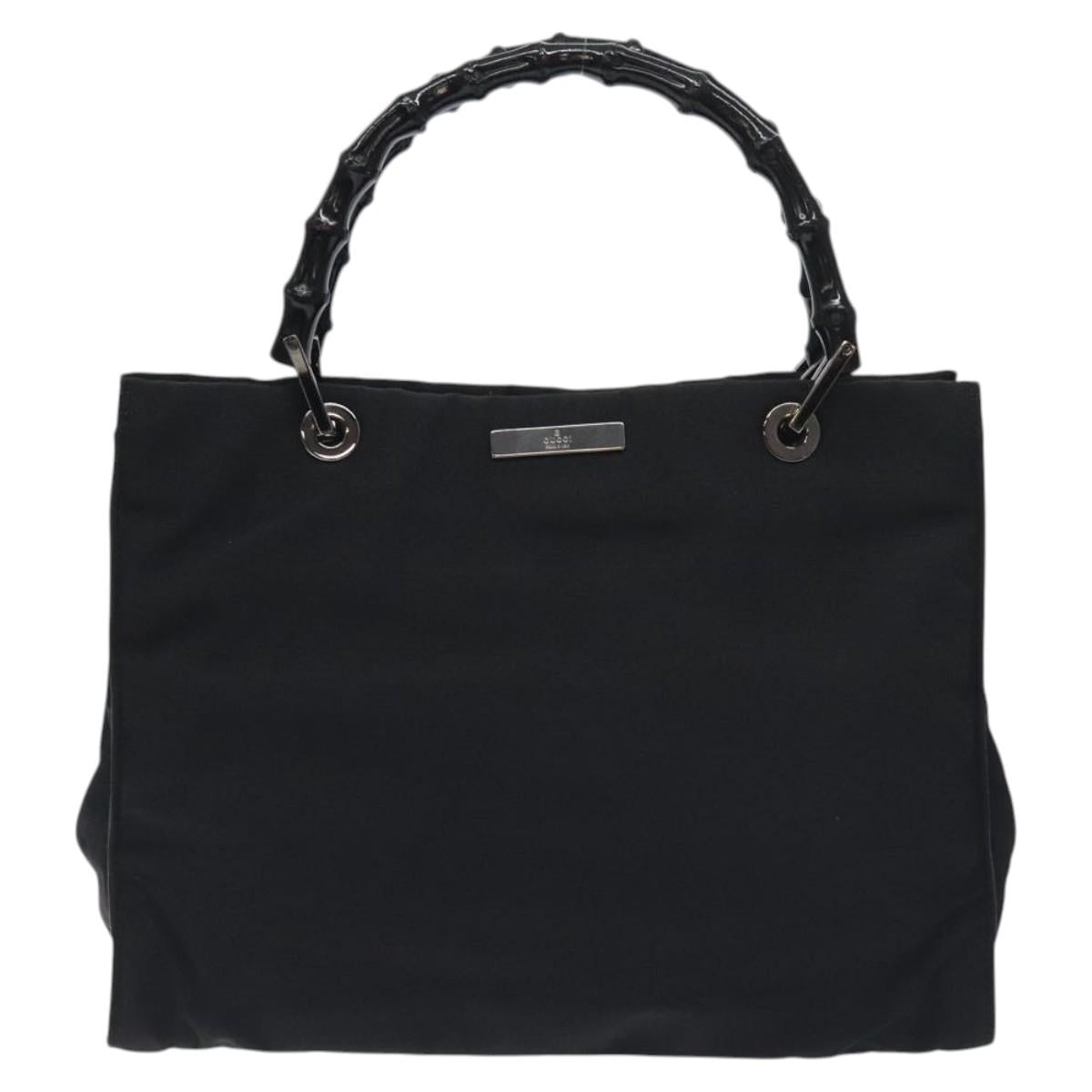 GUCCI Bamboo Hand Bag Canvas Black Silver 002 1016 Auth 129394