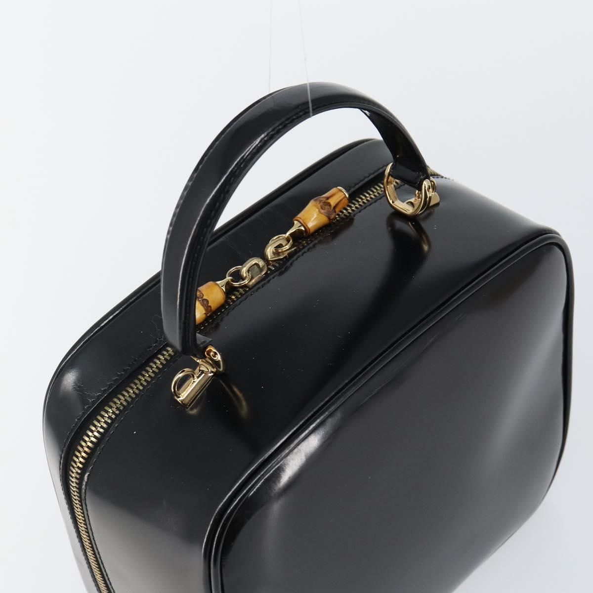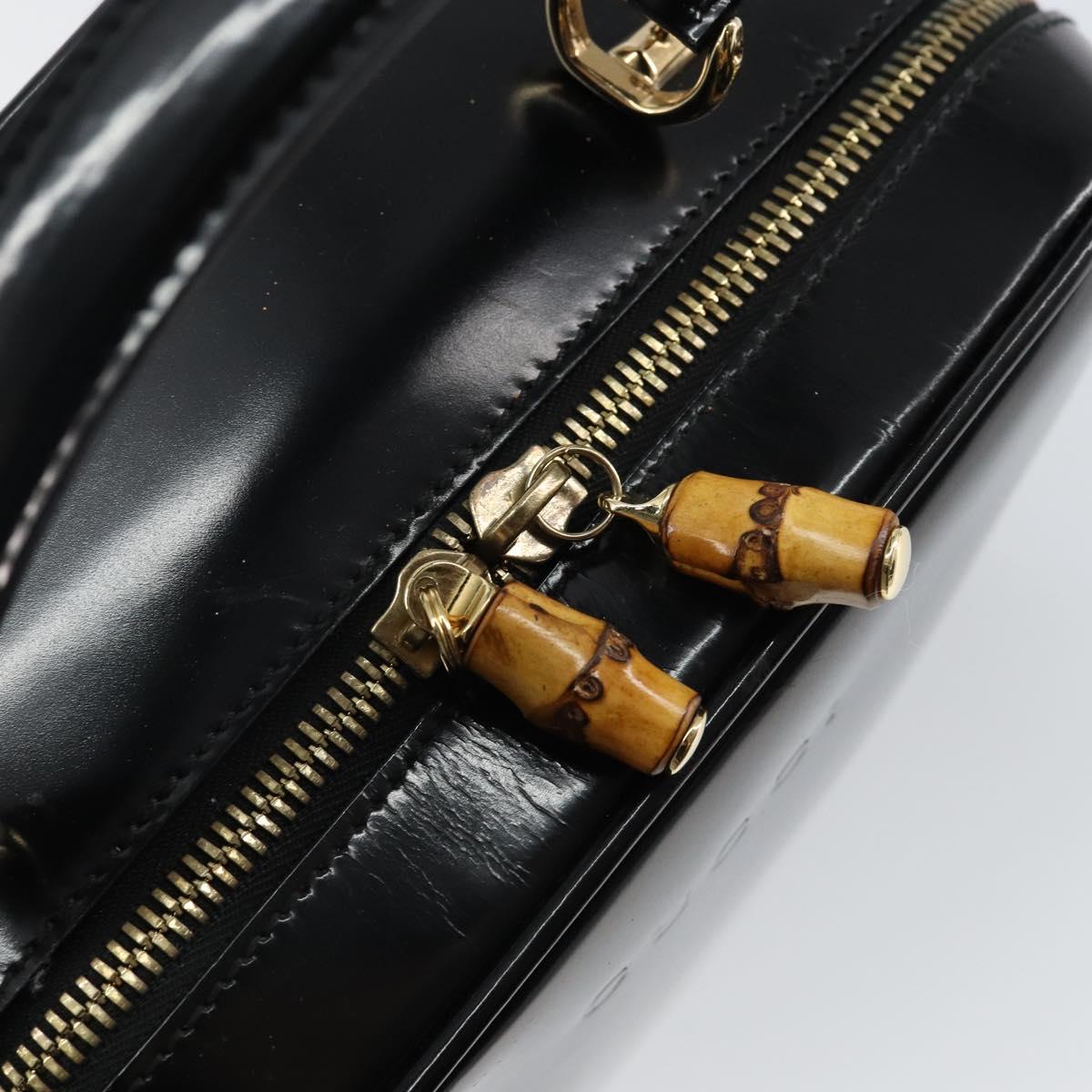GUCCI Bamboo Hand Bag Enamel Black Gold 000 3270 0323 Auth SW1517
