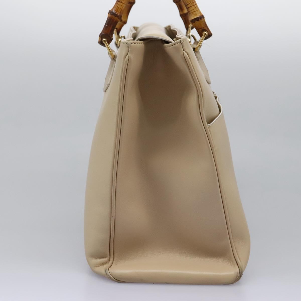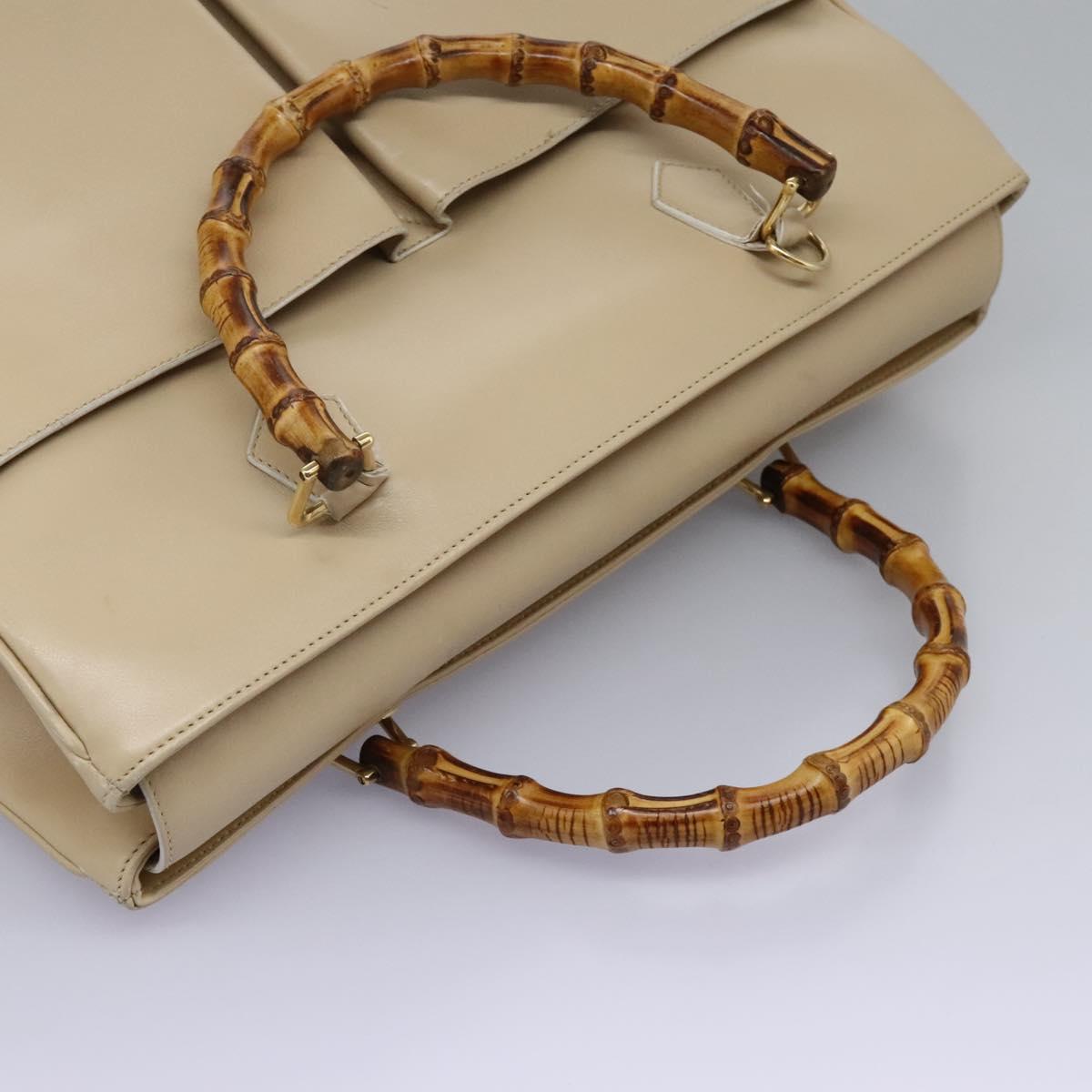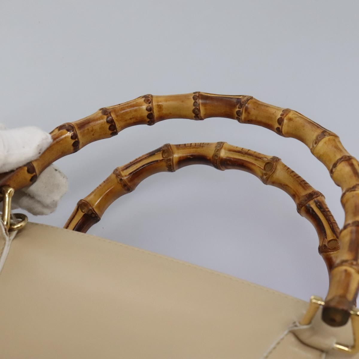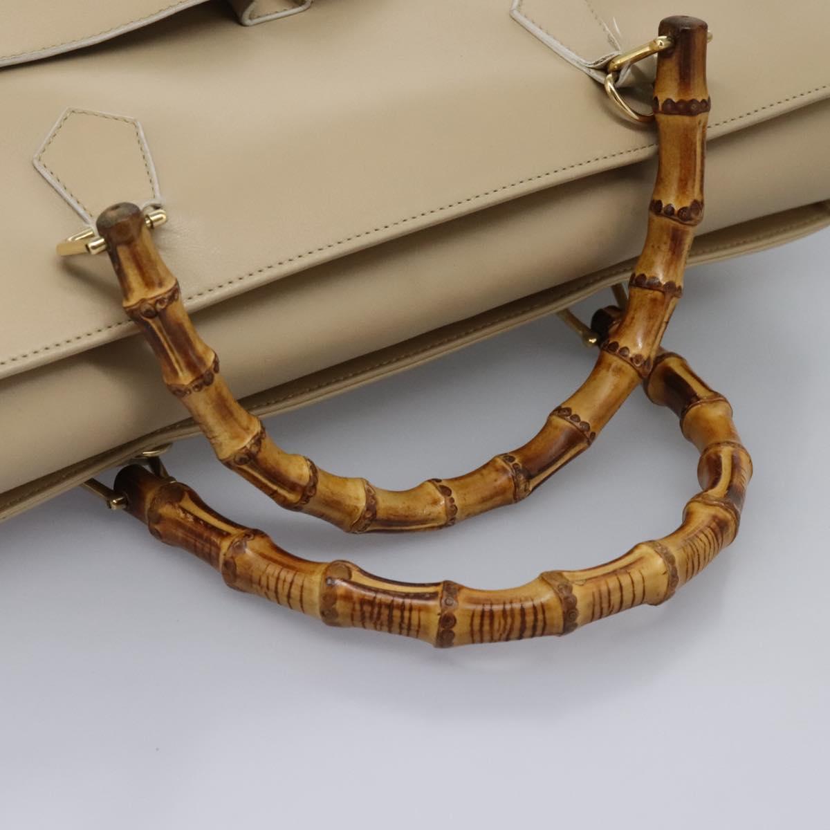 GUCCI Bamboo Hand Bag Leather 2way Beige Gold 002 2855 0322 0 Auth 118505