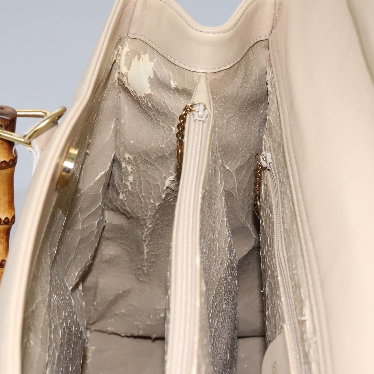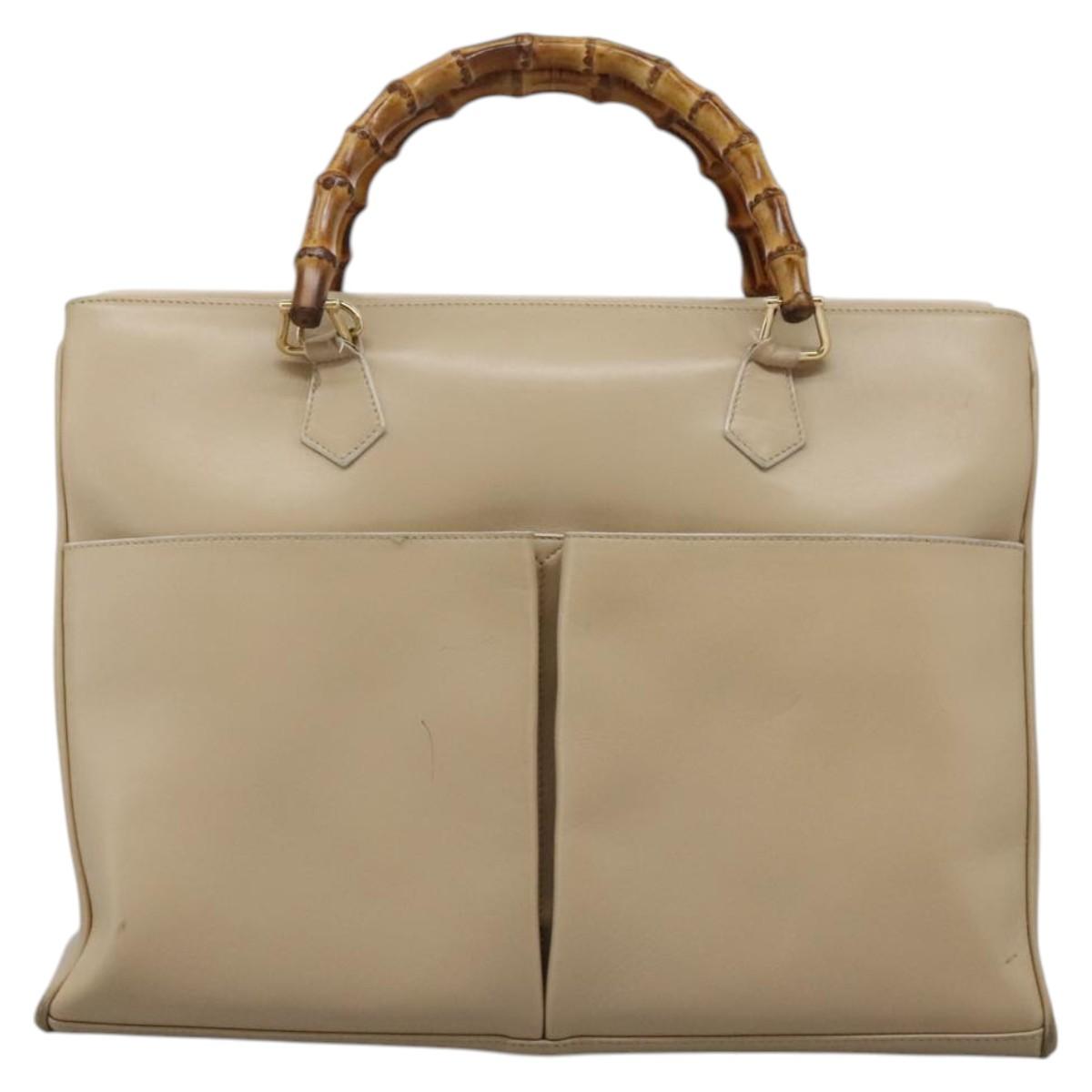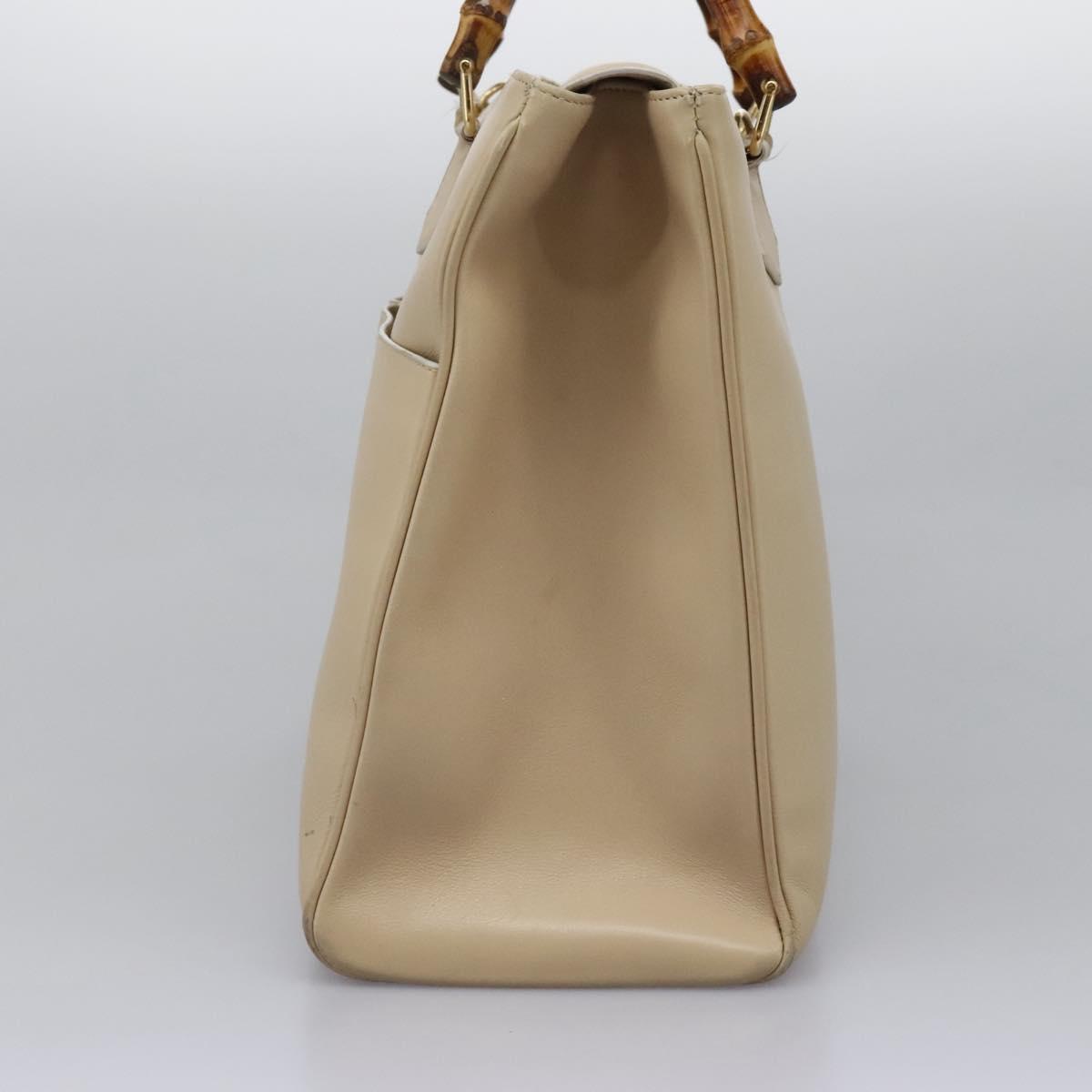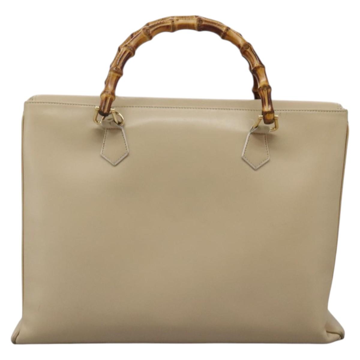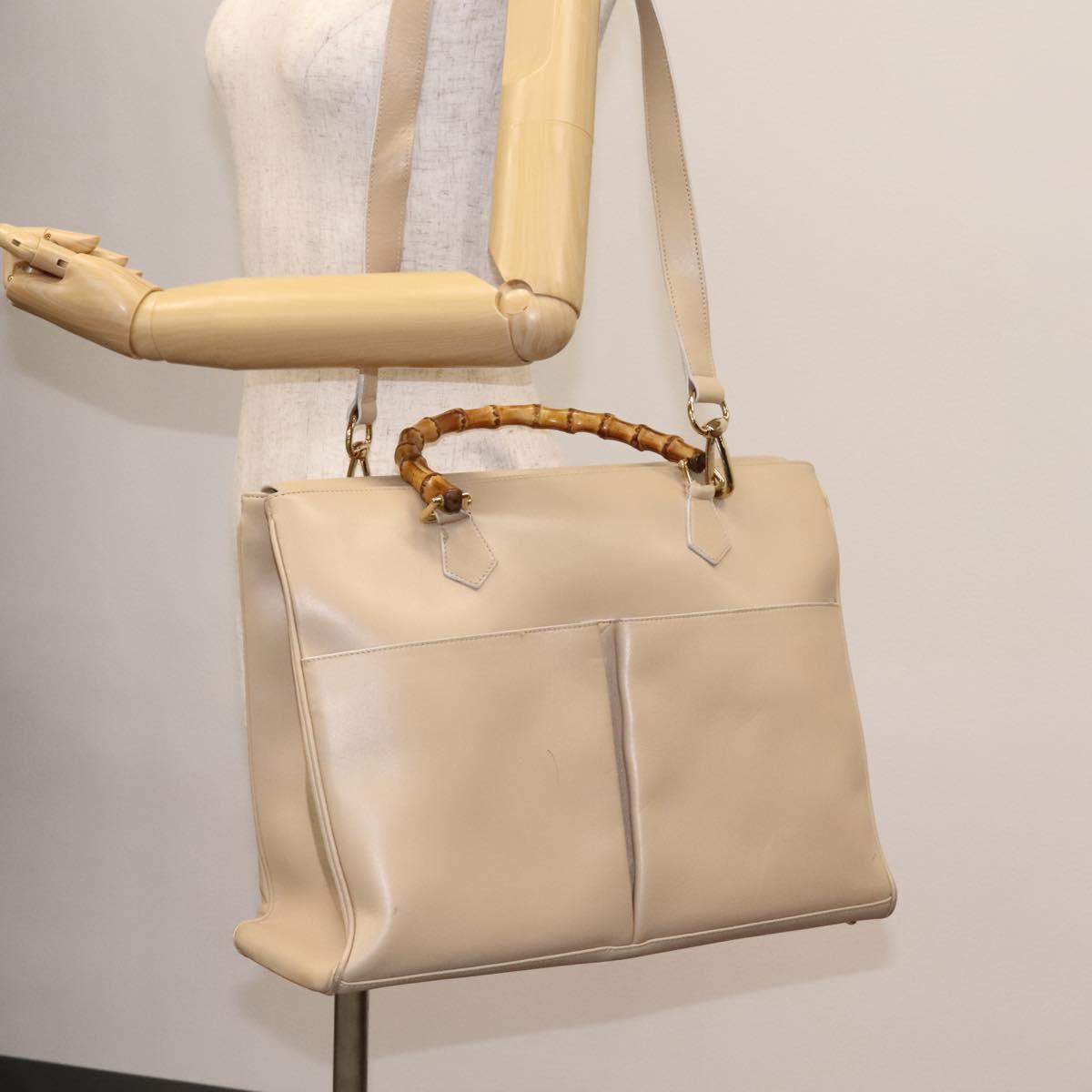 GUCCI Bamboo Hand Bag Leather 2way Beige Gold 002 2855 0322 0 Auth 118505