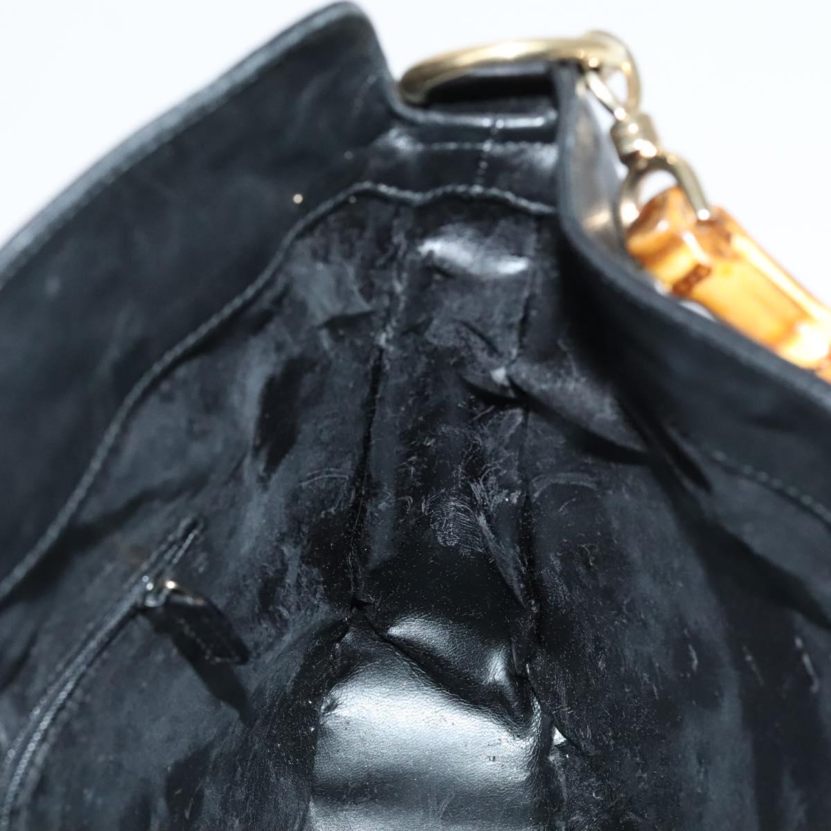 GUCCI Bamboo Hand Bag Leather 2way Black 001 1633 Auth 113151