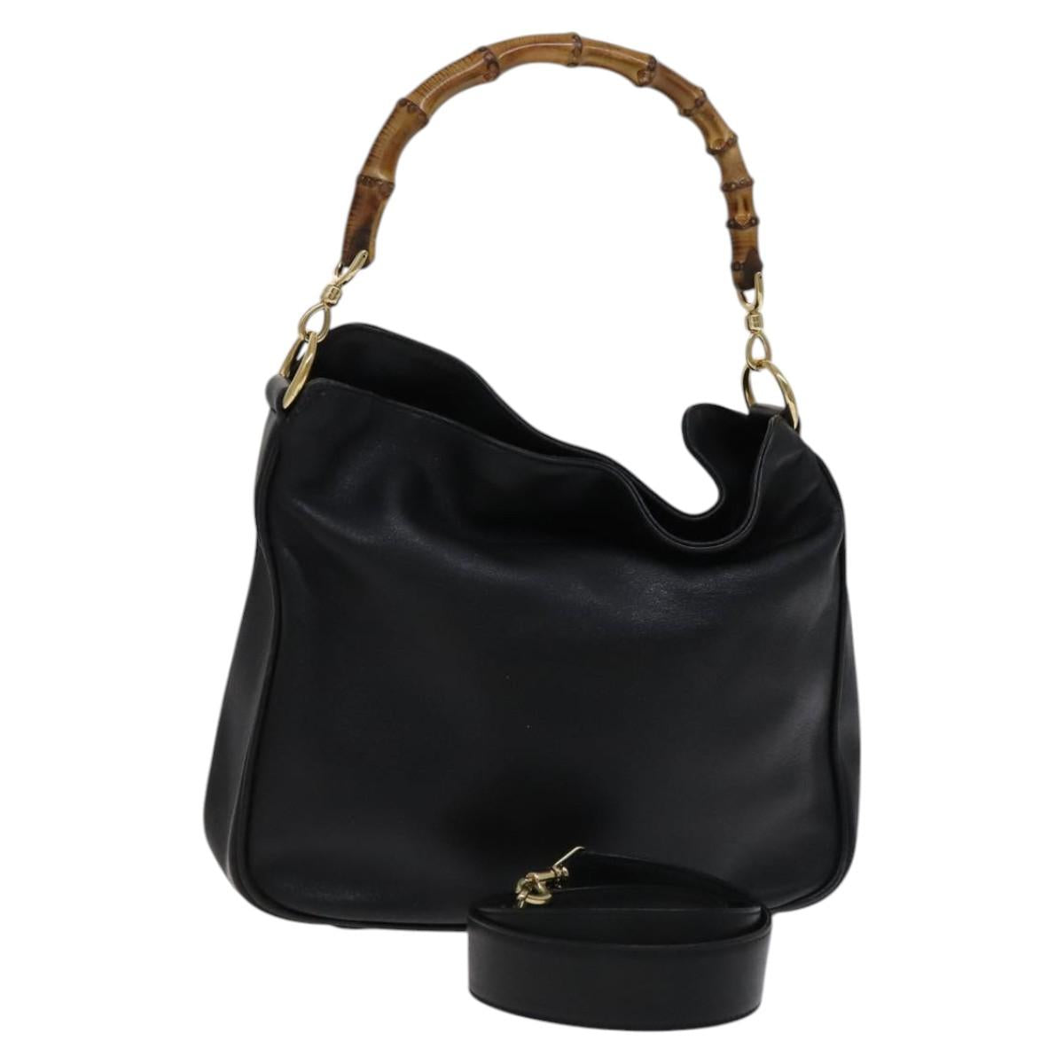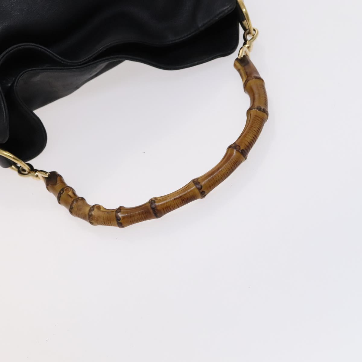GUCCI Bamboo Hand Bag Leather 2way Black 001 1638 Auth 114458