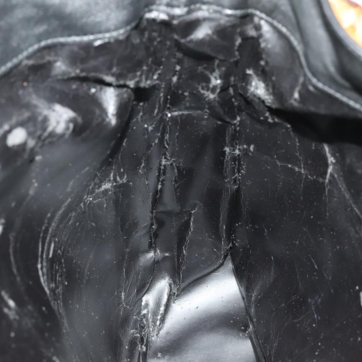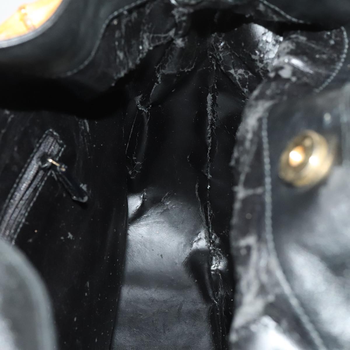 GUCCI Bamboo Hand Bag Leather 2way Black Gold 001 1577 Auth 133277