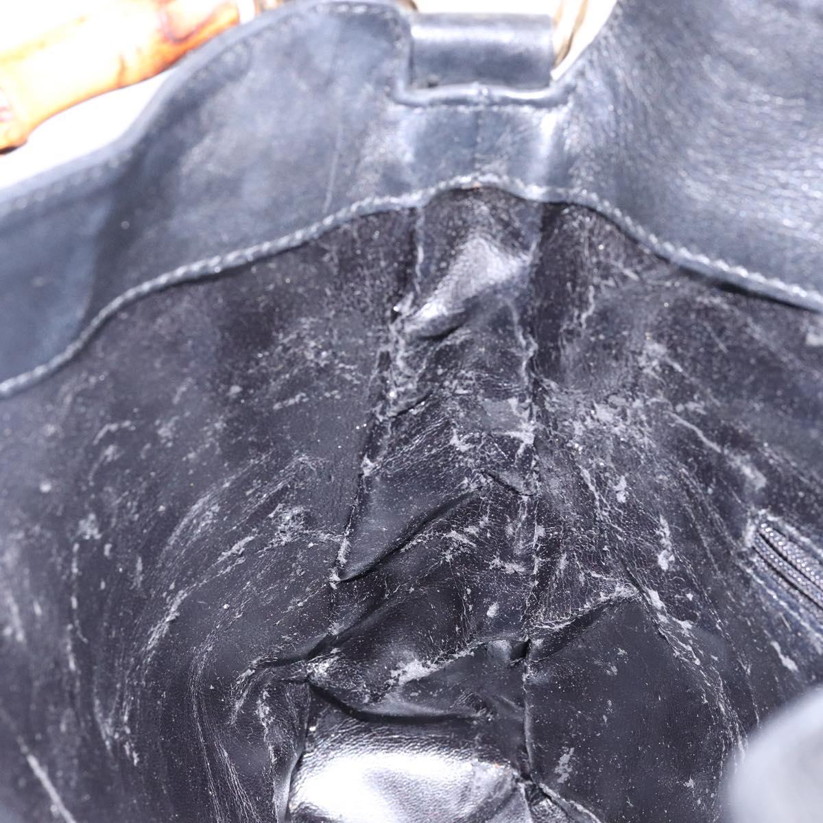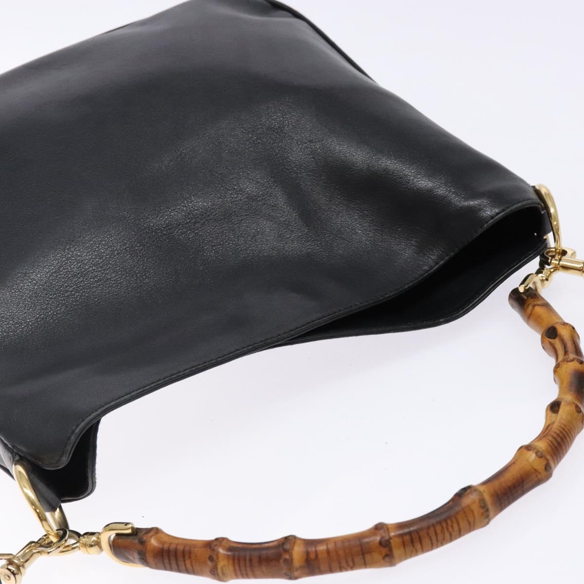GUCCI Bamboo Hand Bag Leather 2way Black Gold 001 1705 1638 Auth ti3391