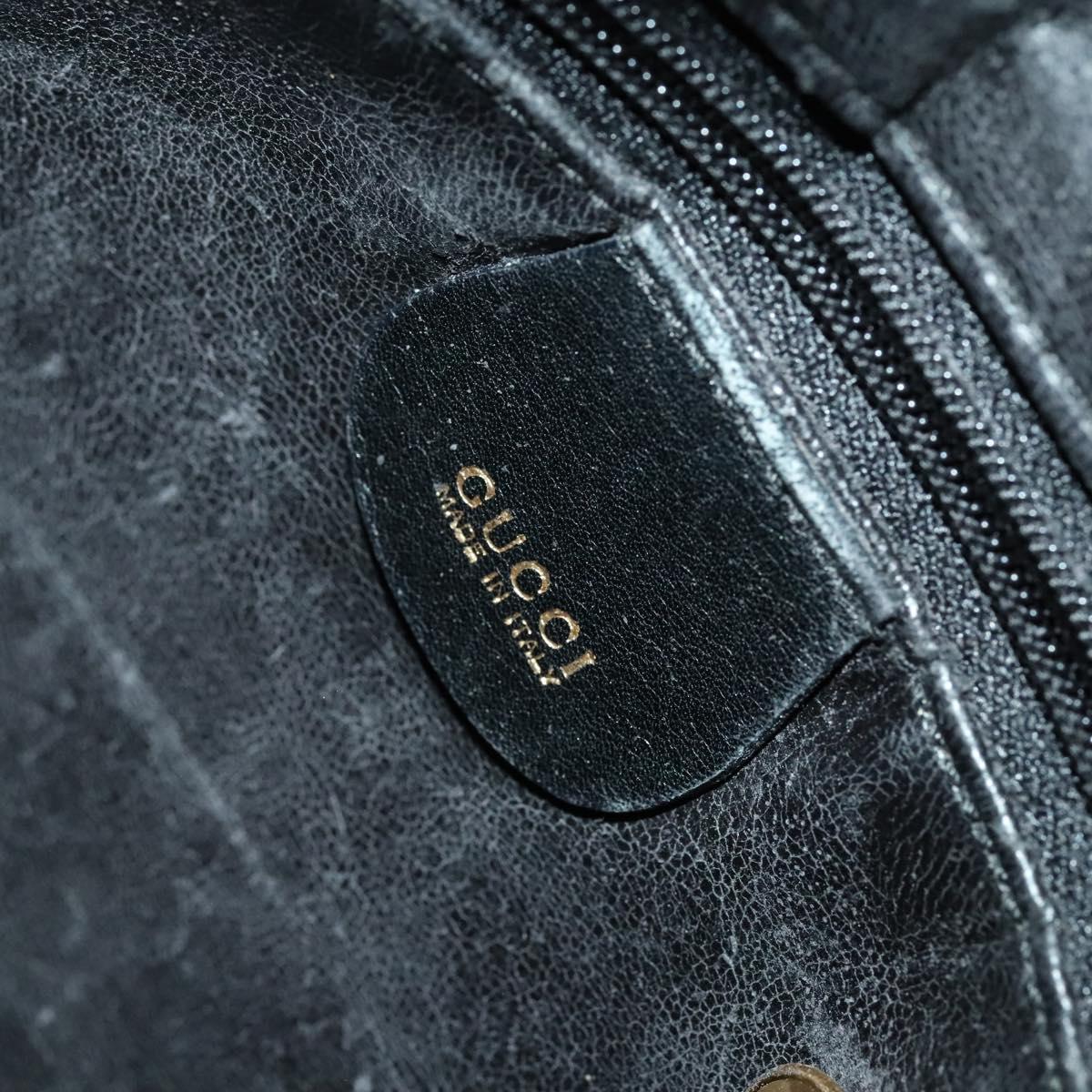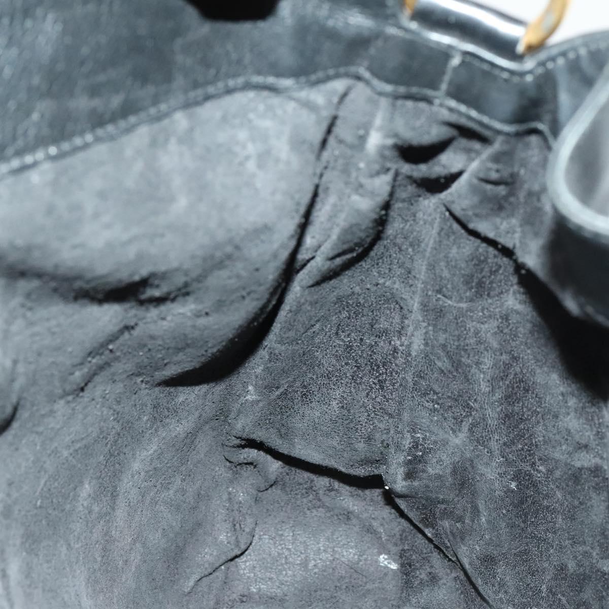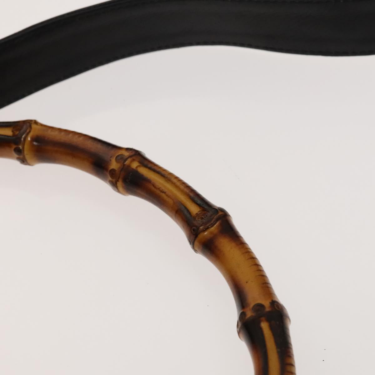 GUCCI Bamboo Hand Bag Leather 2way Black Gold 001 1731 1577 Auth th6271
