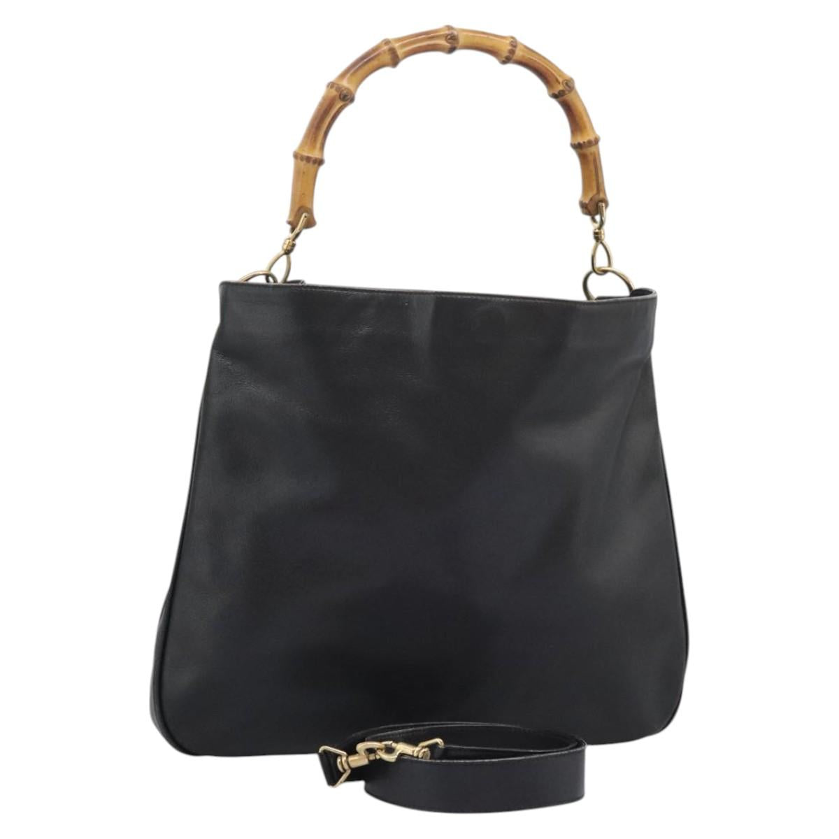 GUCCI Bamboo Hand Bag Leather 2way Black Gold 001 1781 1577 Auth 114799