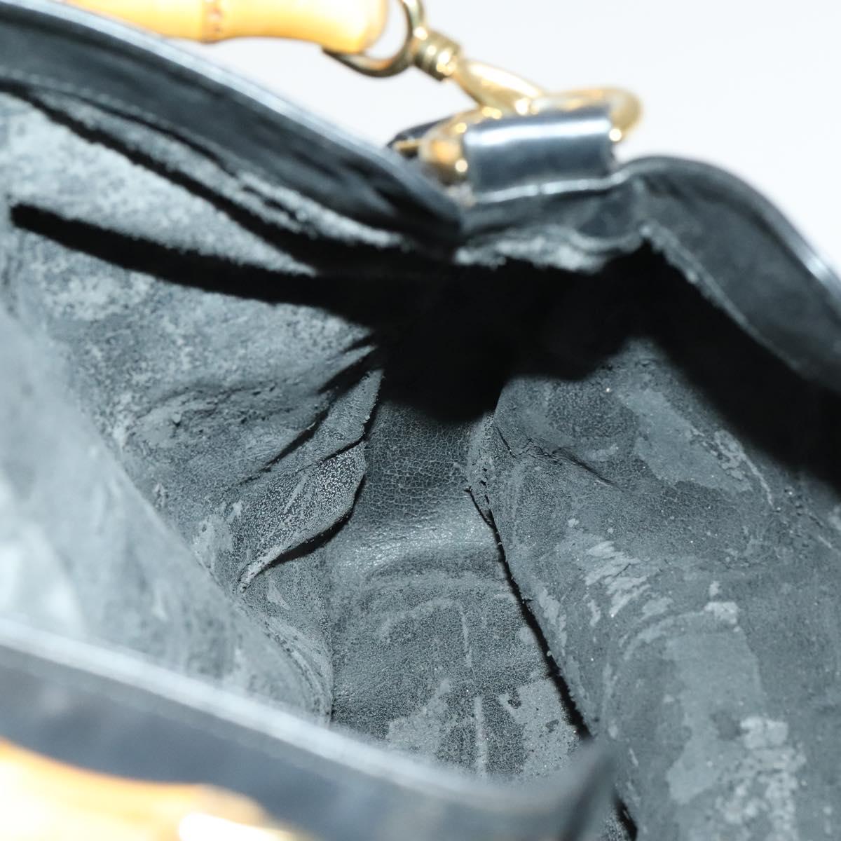 GUCCI Bamboo Hand Bag Leather 2way Black Gold 001 1781 1577 Auth 140641