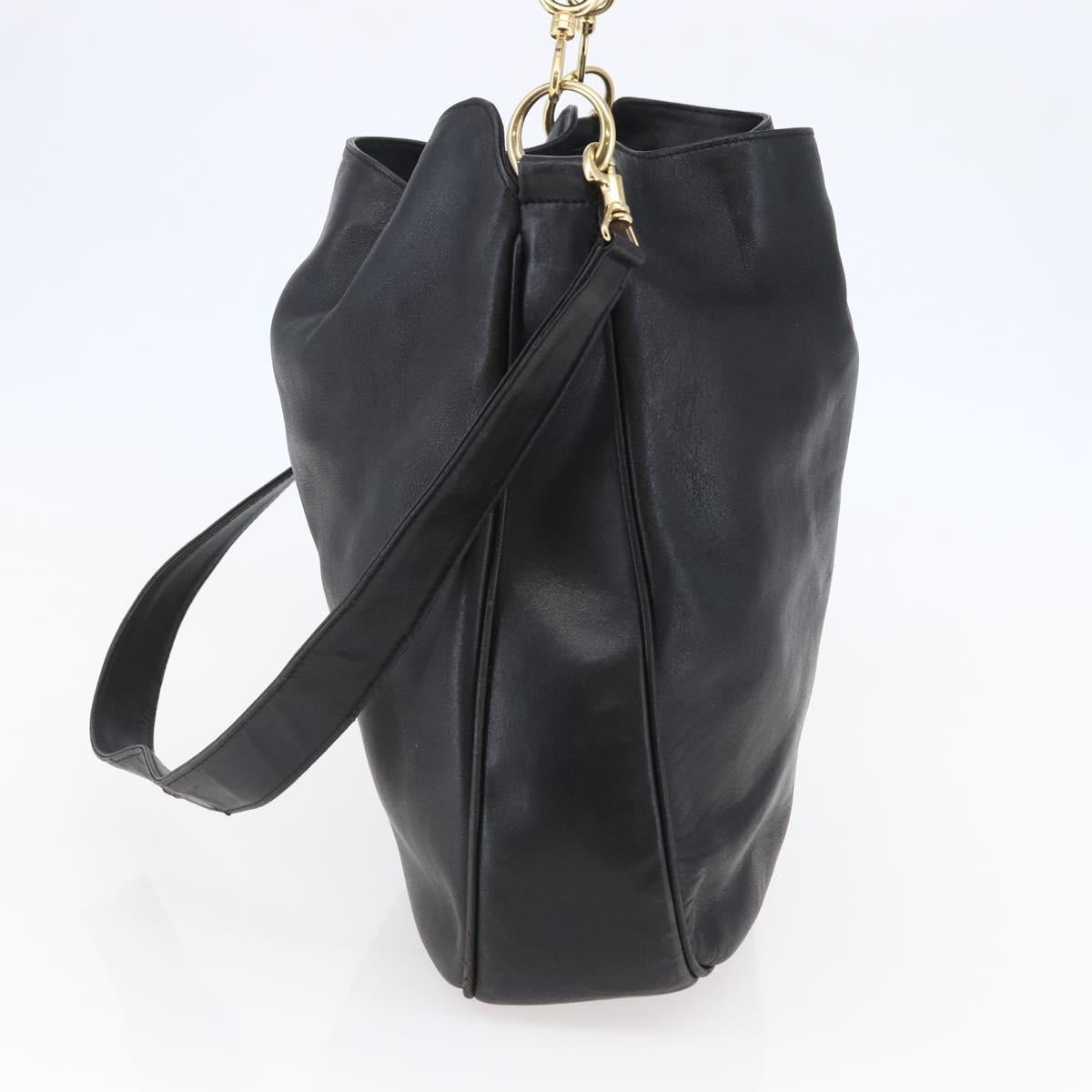GUCCI Bamboo Hand Bag Leather 2way Black Gold 001 1781 1577 Auth ep11092