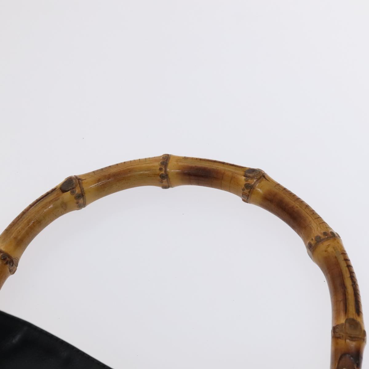 GUCCI Bamboo Hand Bag Leather 2way Black Gold 001 1781 1577 Auth KD086