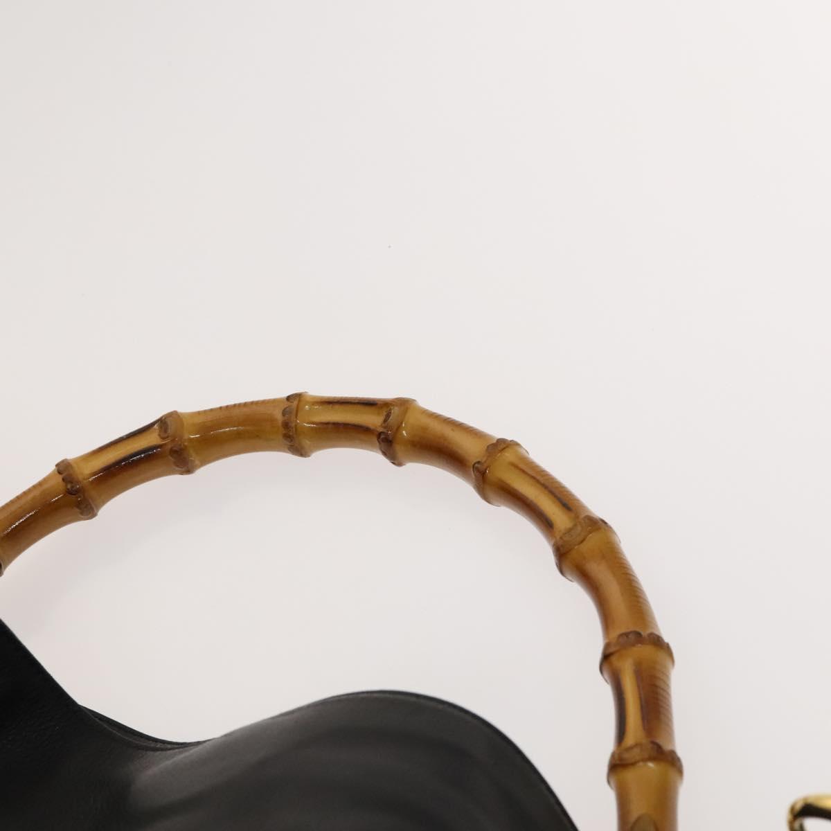 GUCCI Bamboo Hand Bag Leather 2way Black Gold 001 1998 1577 Auth ar13564
