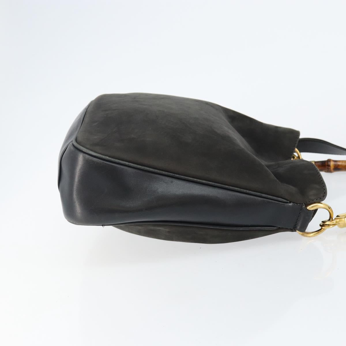 GUCCI Bamboo Hand Bag Leather 2way Black Gold 001 2113 1638 Auth ep10751