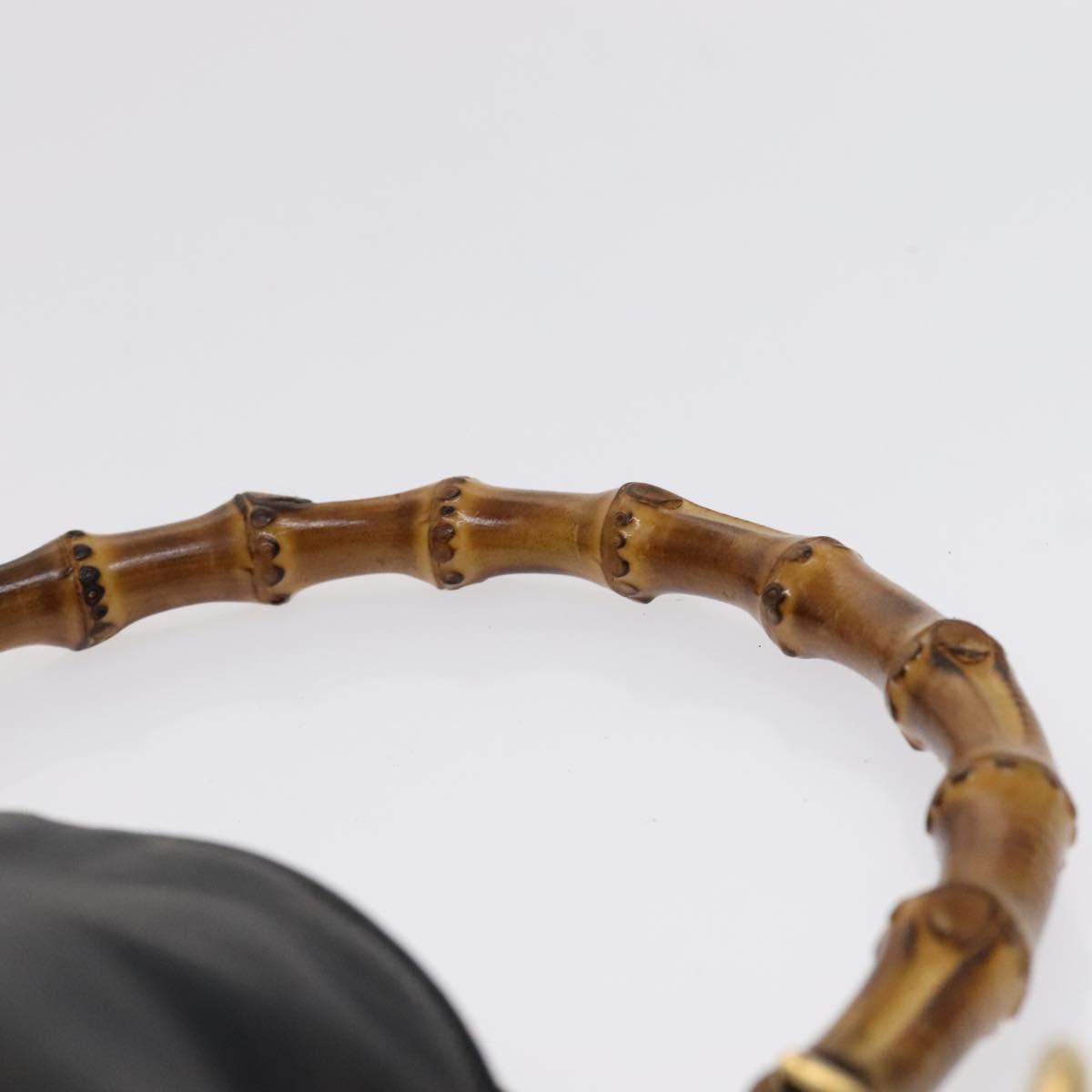 GUCCI Bamboo Hand Bag Leather 2way Black Gold 001 2113 1638 Auth KD087