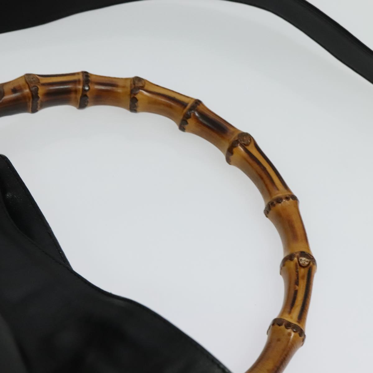 GUCCI Bamboo Hand Bag Leather 2way Black Gold 001 2123 1577 Auth 135785