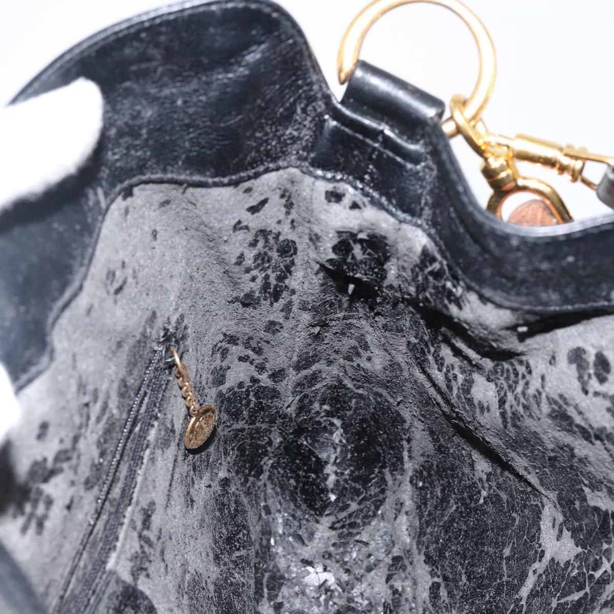 GUCCI Bamboo Hand Bag Leather 2way Black Gold Auth ep10736