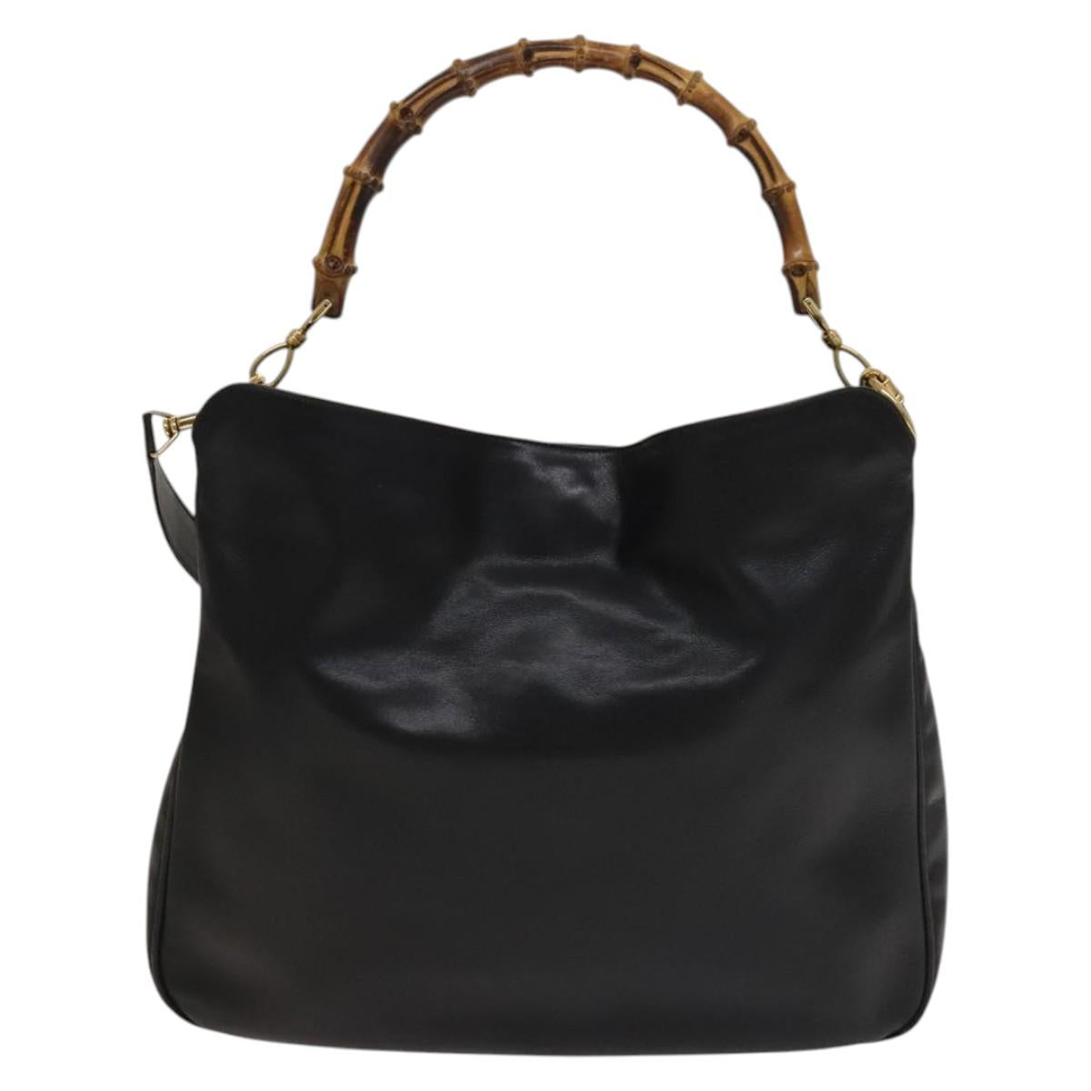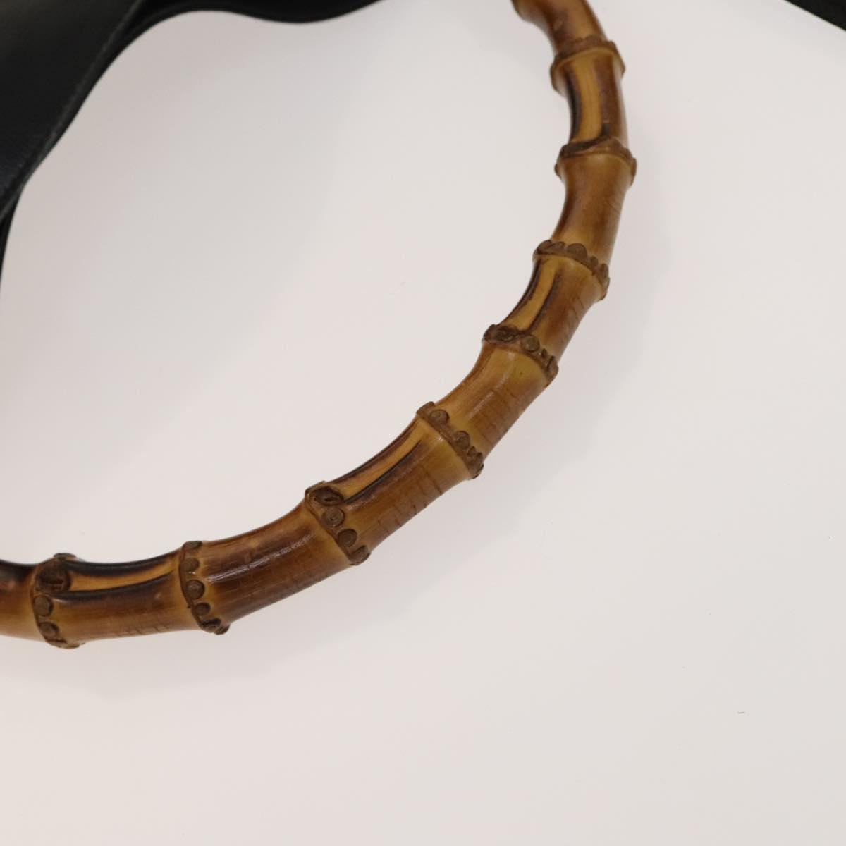 GUCCI Bamboo Hand Bag Leather 2way Black Gold Auth ep9886