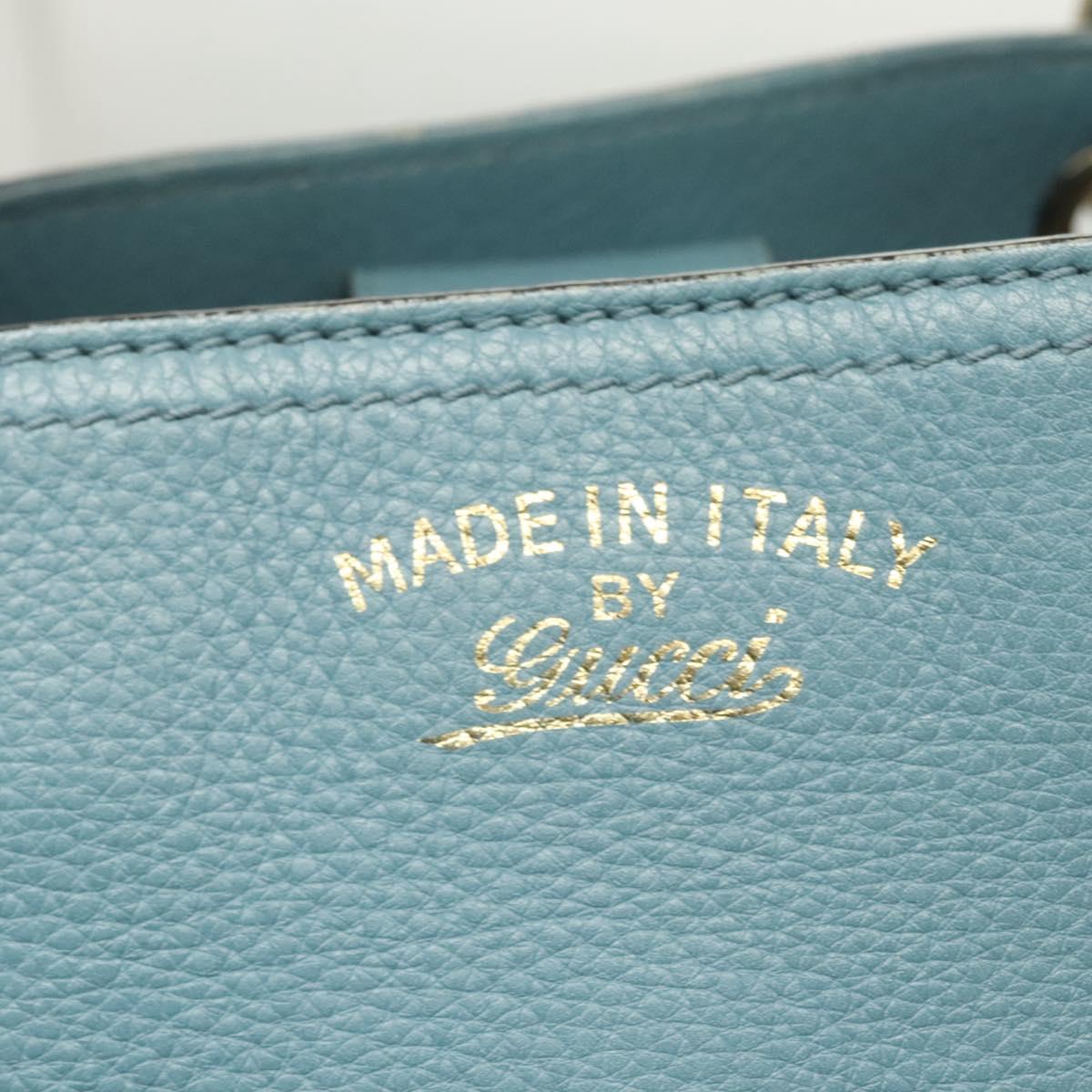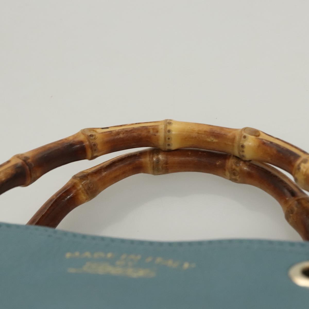 GUCCI Bamboo Hand Bag Leather 2way Blue Silver 336032 Auth 121645