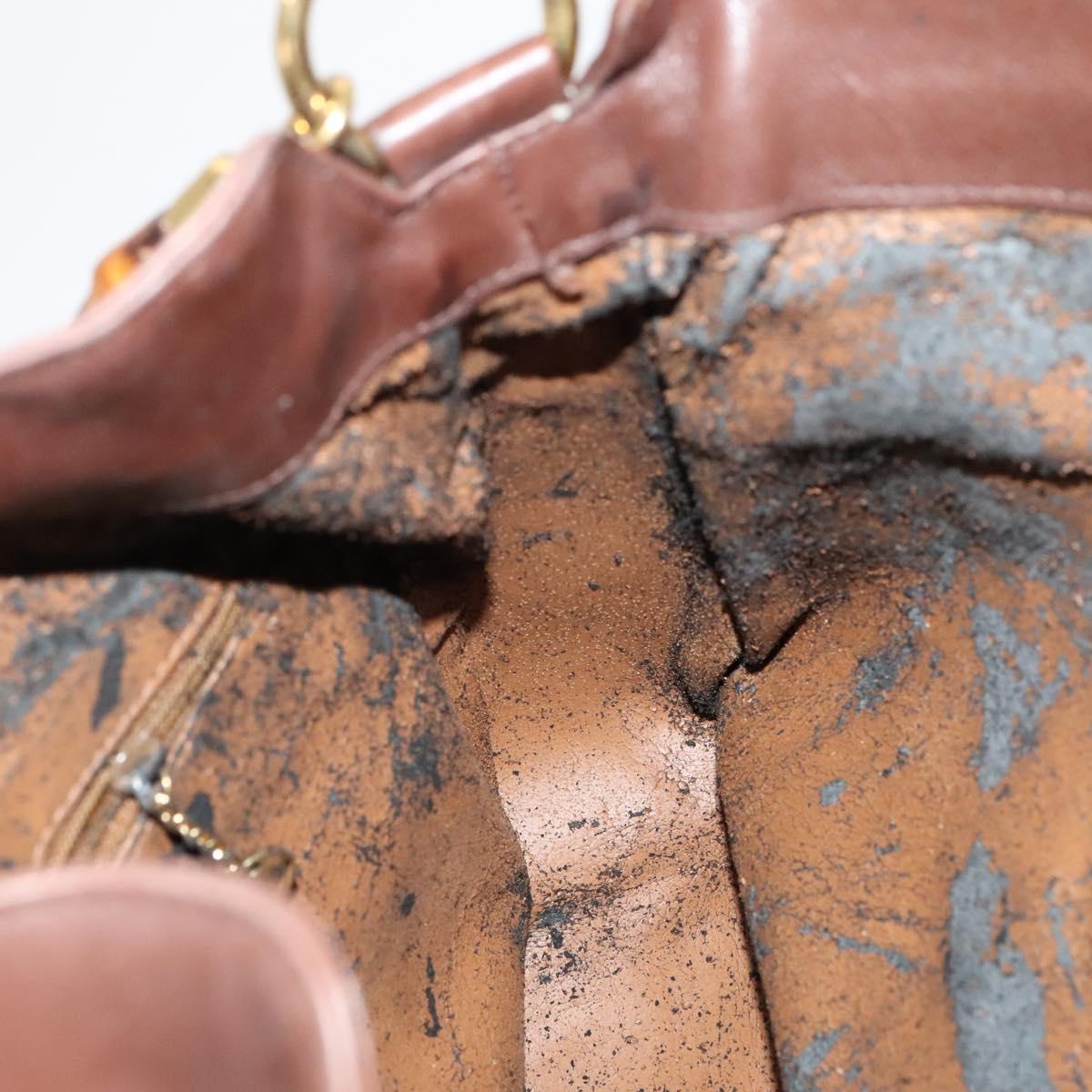 GUCCI Bamboo Hand Bag Leather 2way Brown Gold 001 14 1638 Auth th5652