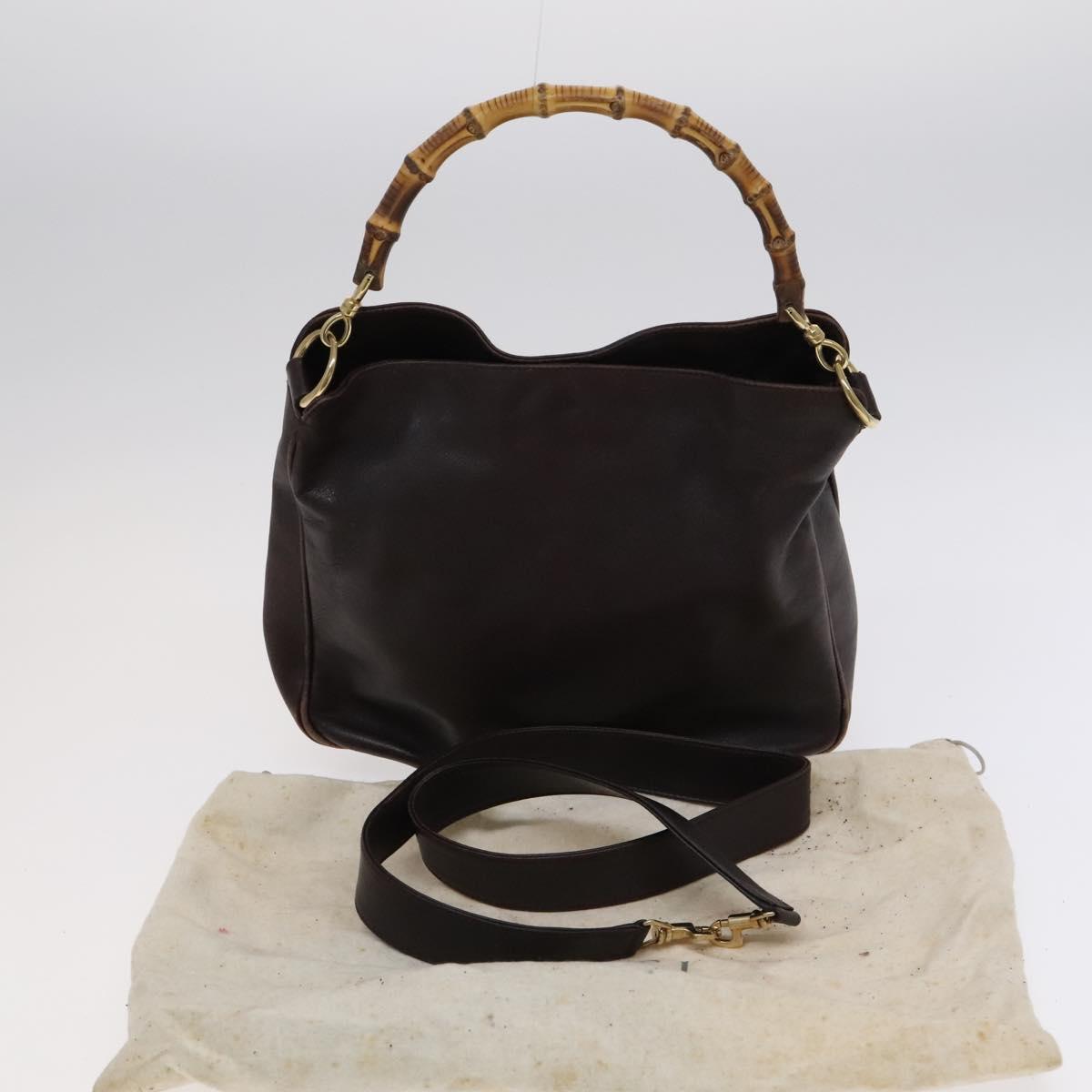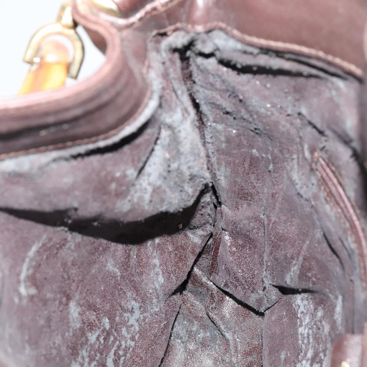 GUCCI Bamboo Hand Bag Leather 2way Brown Gold 001 1705 1638 Auth th5638