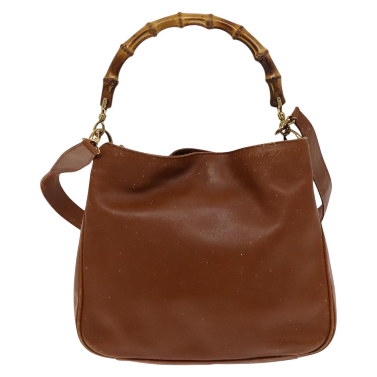 GUCCI Bamboo Hand Bag Leather 2way Brown Gold 001 2113 1638 Auth gh612