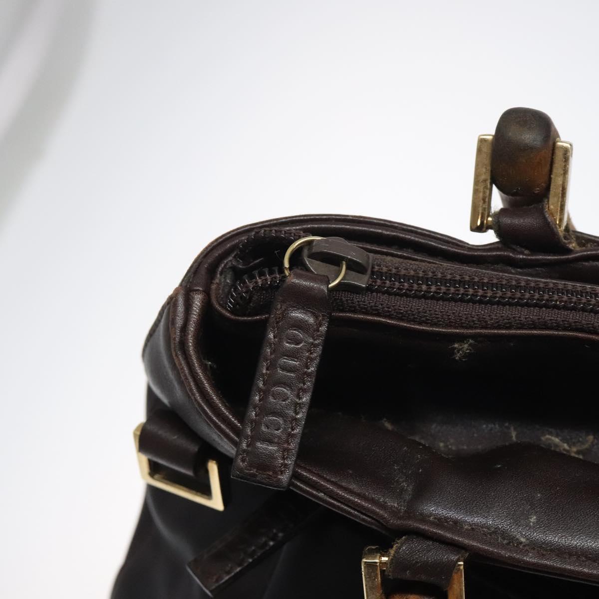 GUCCI Bamboo Hand Bag Leather 2way Dark Brown Gold Auth 121135