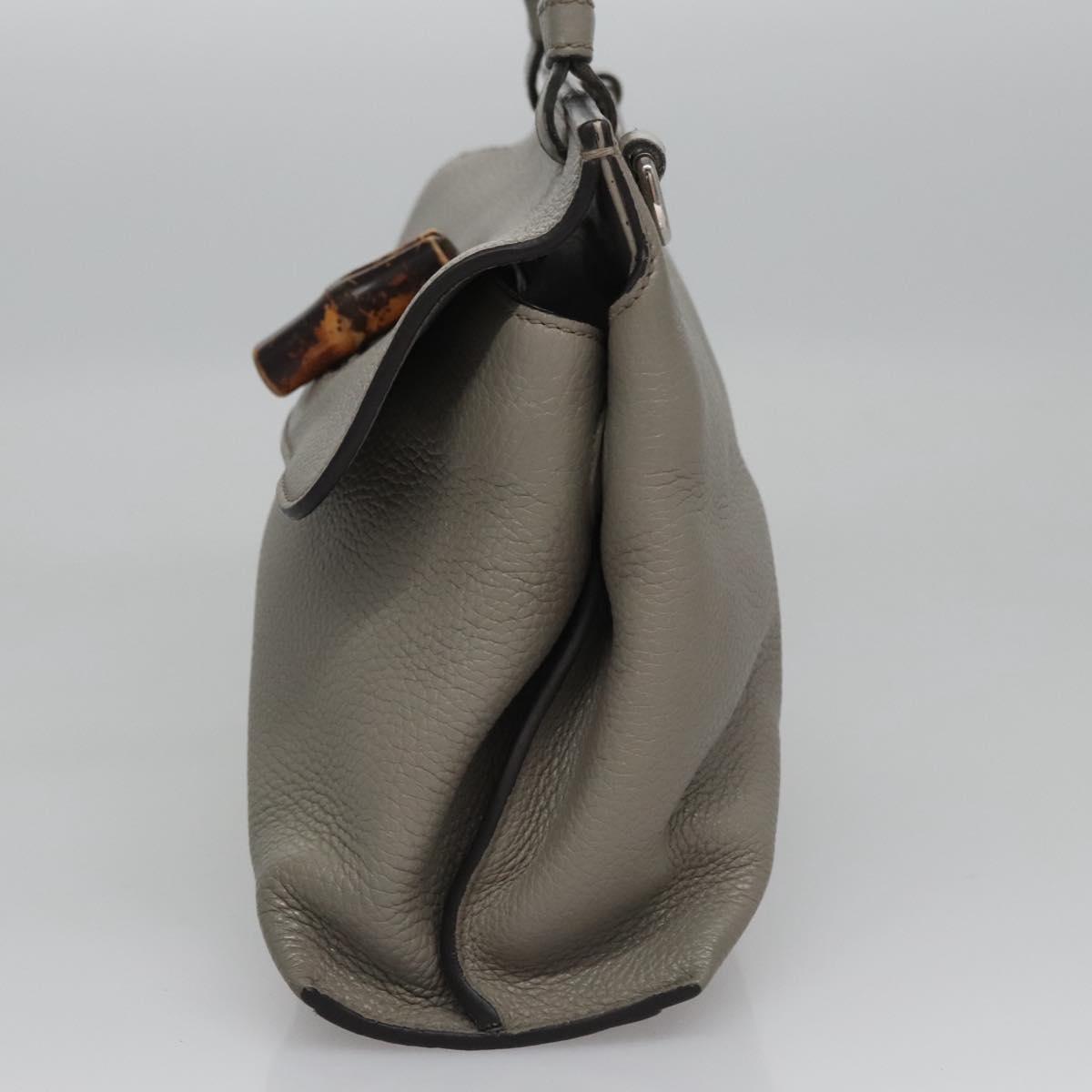 GUCCI Bamboo Hand Bag Leather 2way Gray 370831 Auth BA091