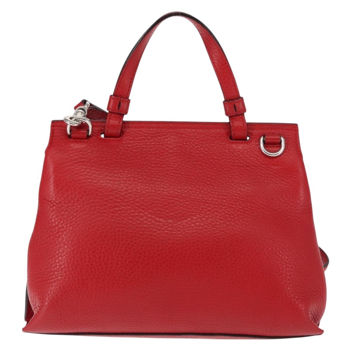GUCCI Bamboo Hand Bag Leather 2way Red Silver 370831 Auth 145950