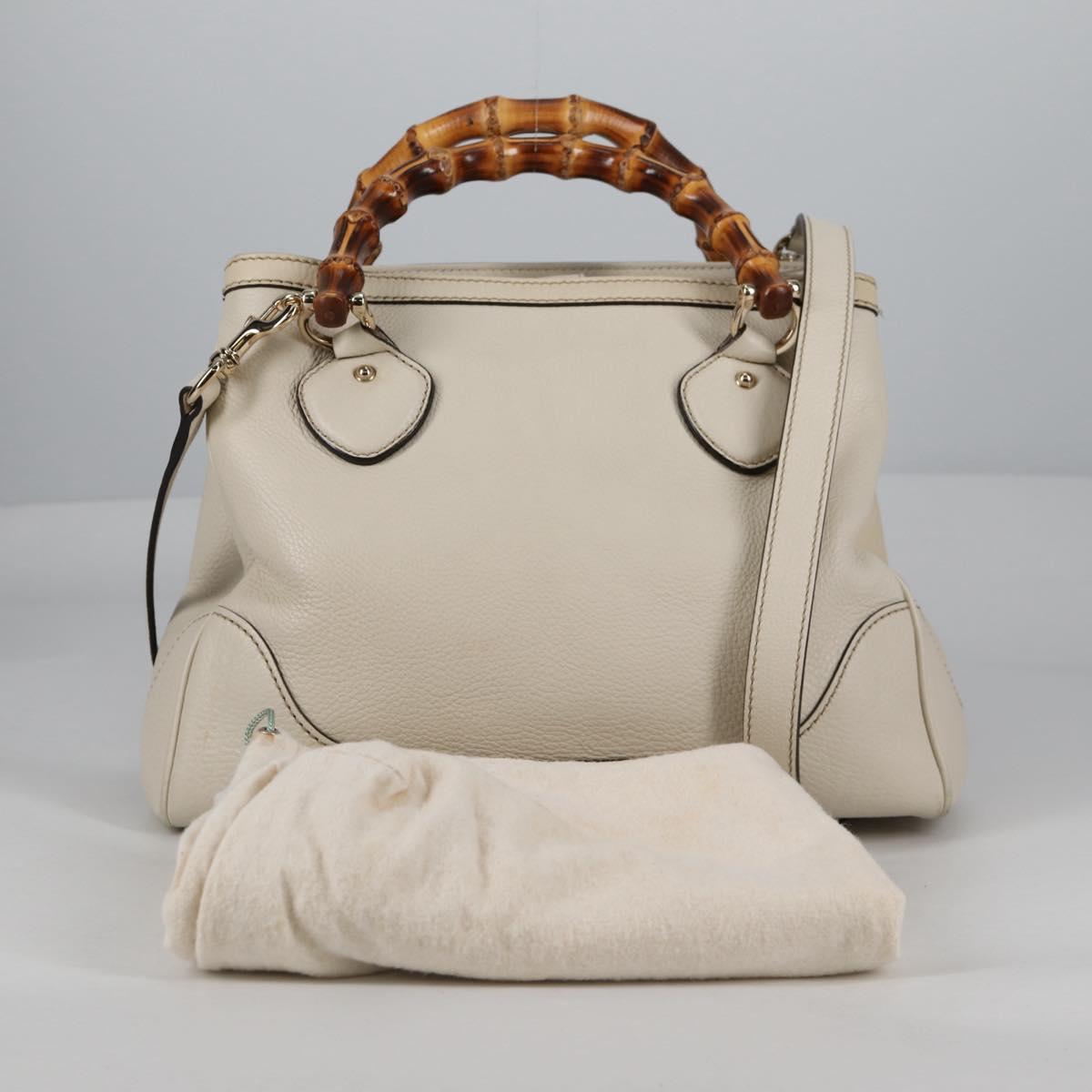 GUCCI Bamboo Hand Bag Leather 2way White Gold 308360 Auth 135217V